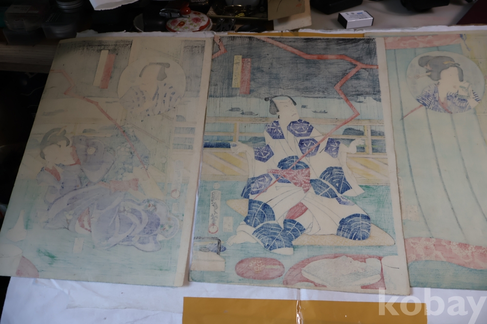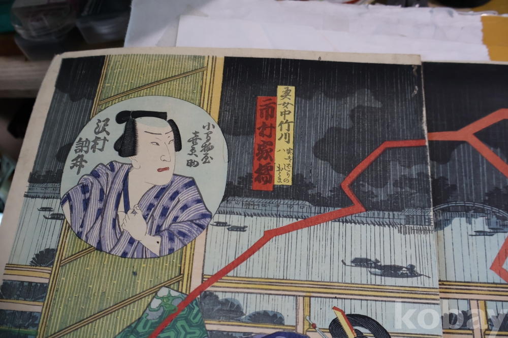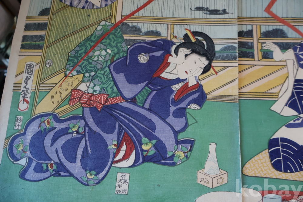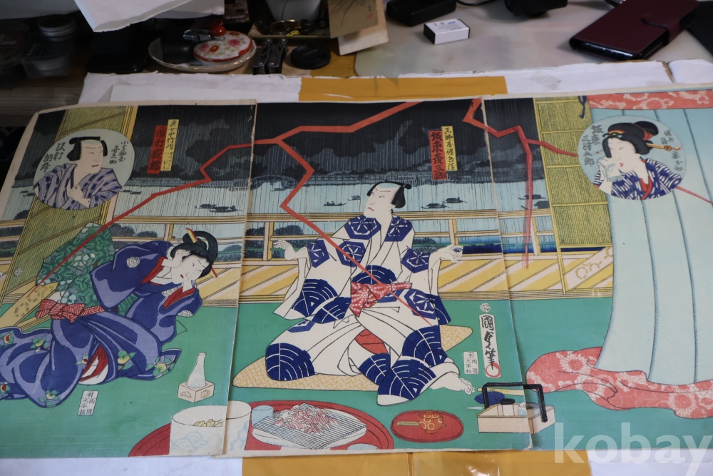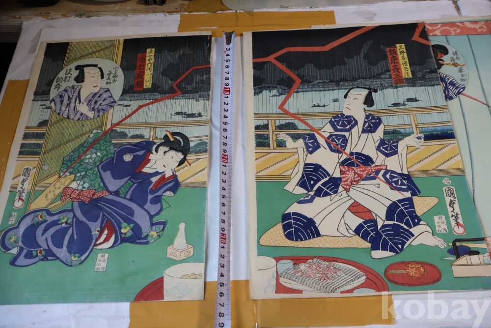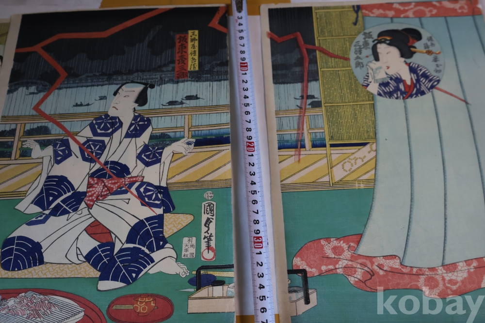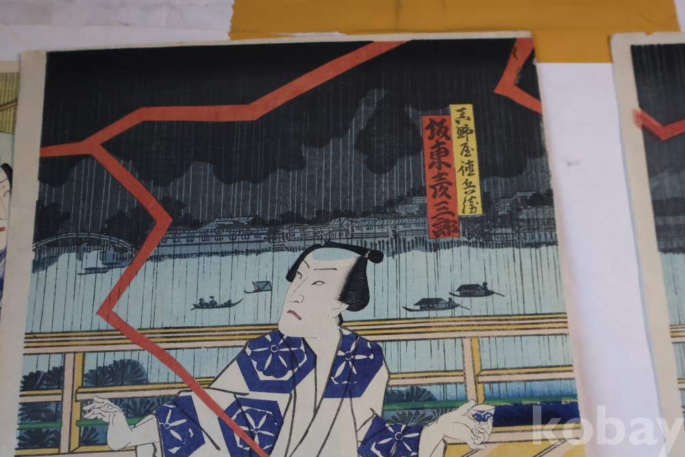 구니시다의 대표 작 명작 번개 임니다 19세기 진품 목판화 원본 임니다 Artist: Kunisada II
