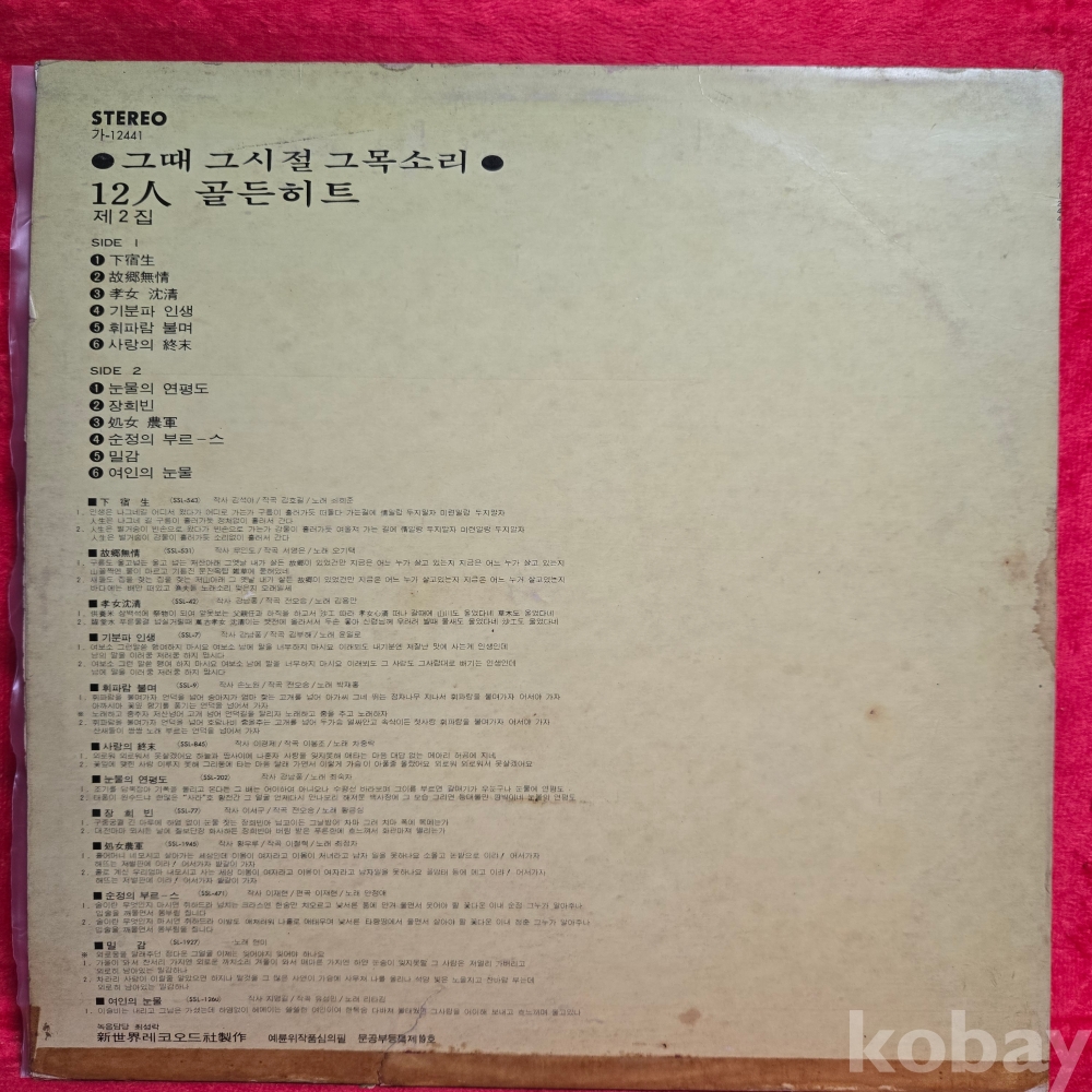 중고 LP인 관계로 취소나 반품도 불가합니다.