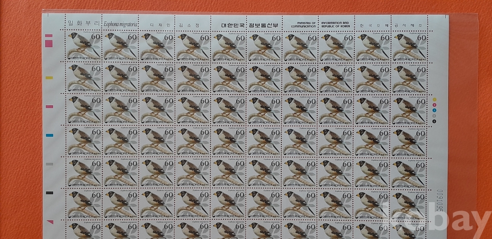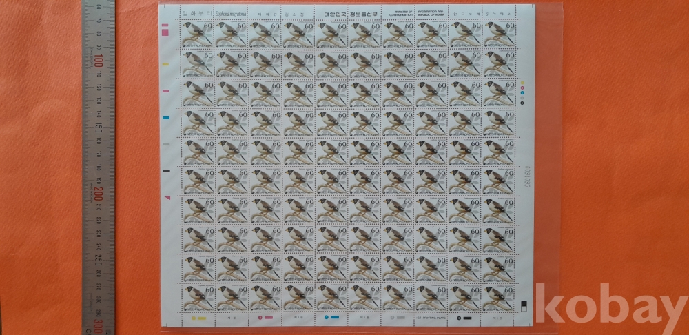 2002년 기본료 190원 시기 60원 밀화부리 100매 전지 입니다.