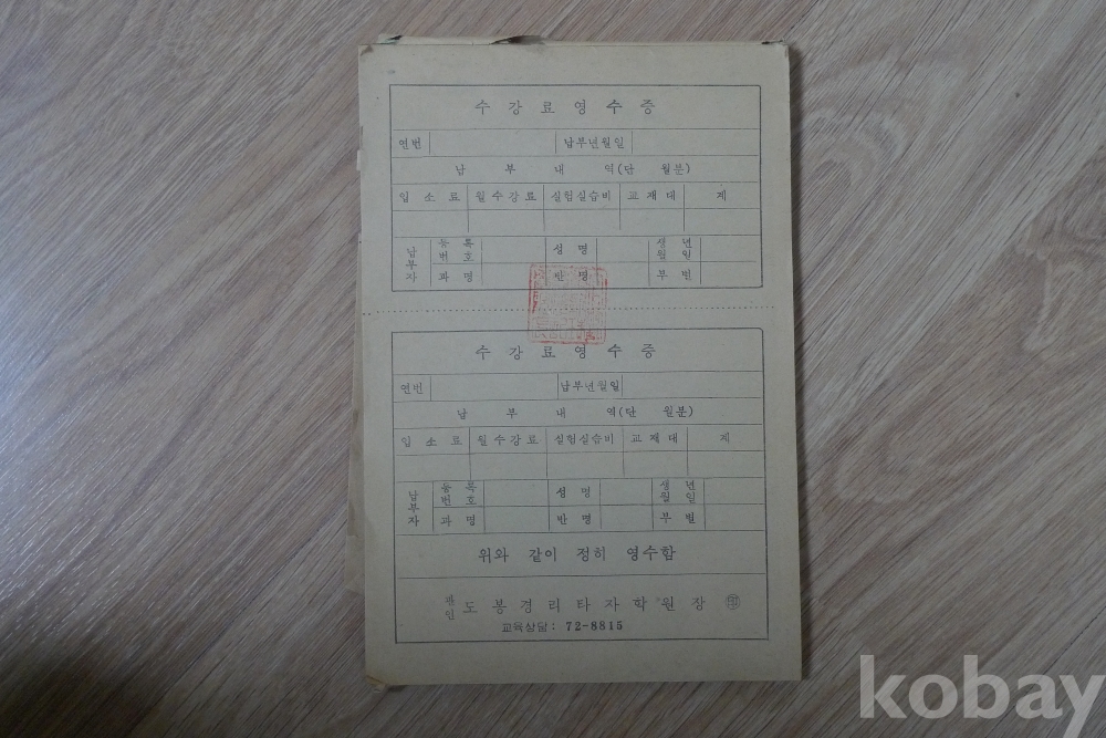 1970년대 도봉 경리 타자 학원 수걍료 영수증 1묶음