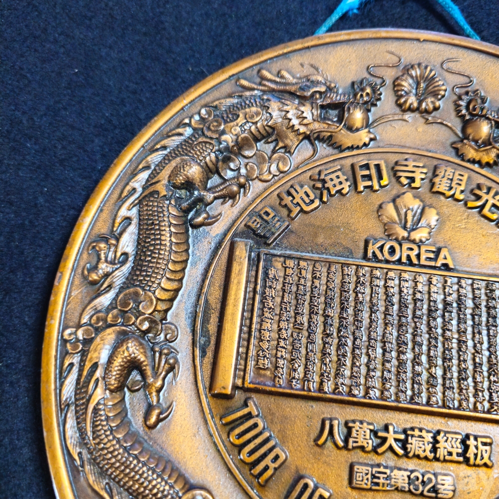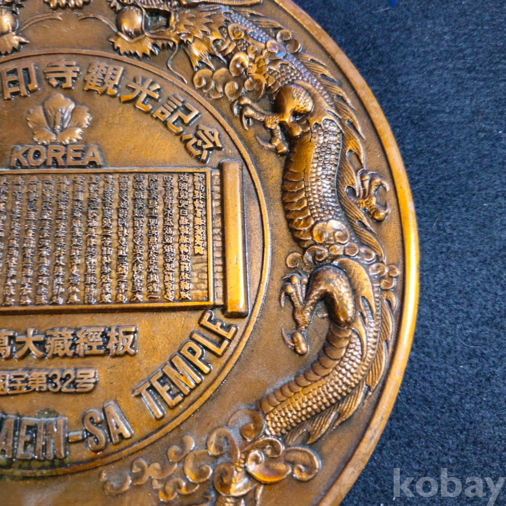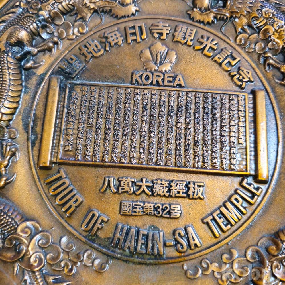 (((근현대사자료))) 1980년대 聖地海印寺 觀光記念 國寶第32號 八萬大藏經 무게감있는 금속 벽걸이 접시