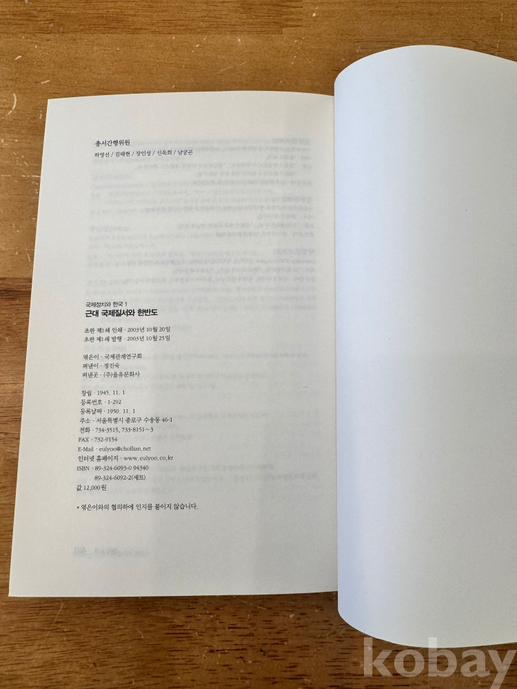 [한국근대사] 국제관계연구회, <근대 국제질서와 한반도>, 을유문화사, 2003, p. 407, 상태 중상급(사진참조)