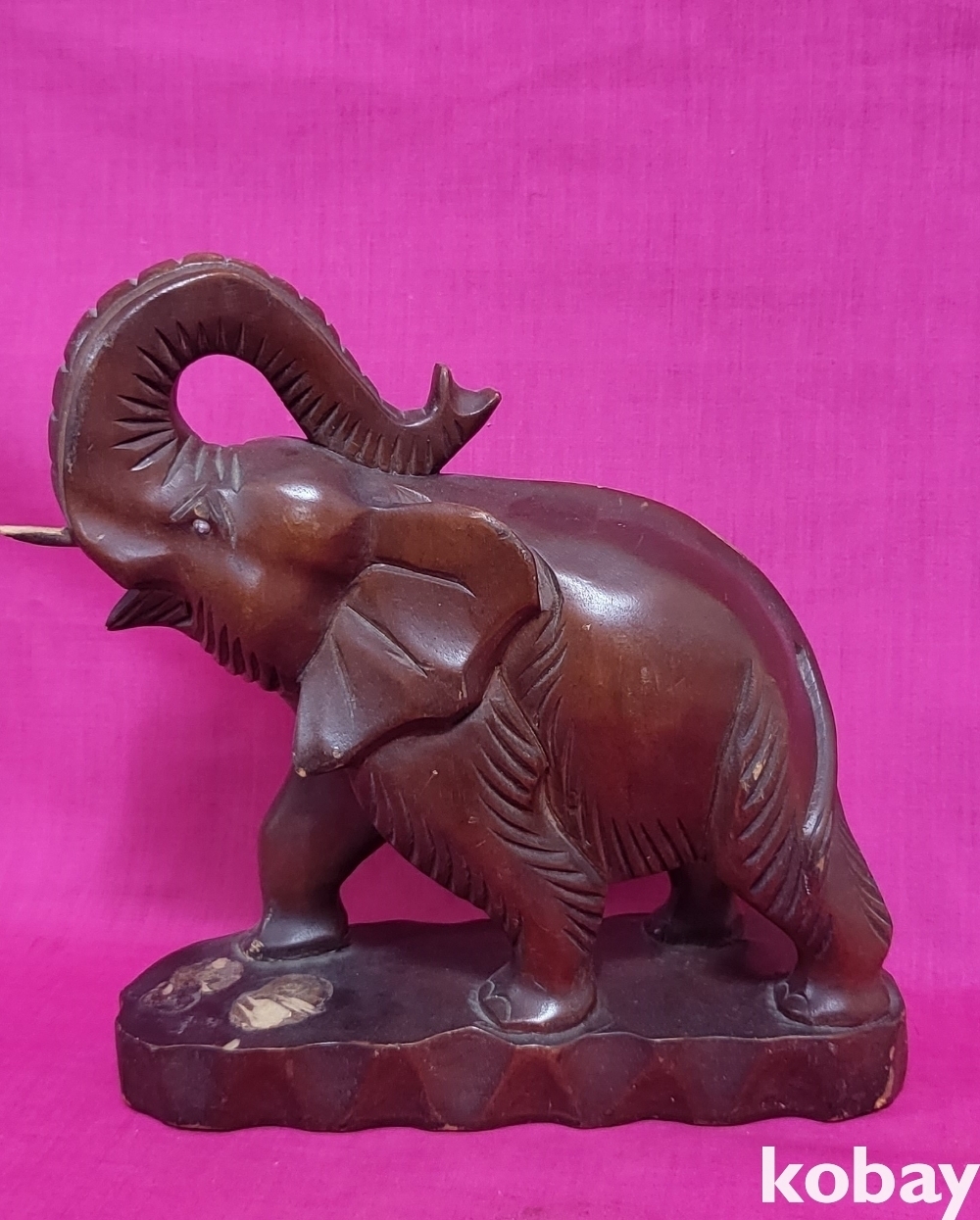 나무로 만든 코끼리 조각품입니다,