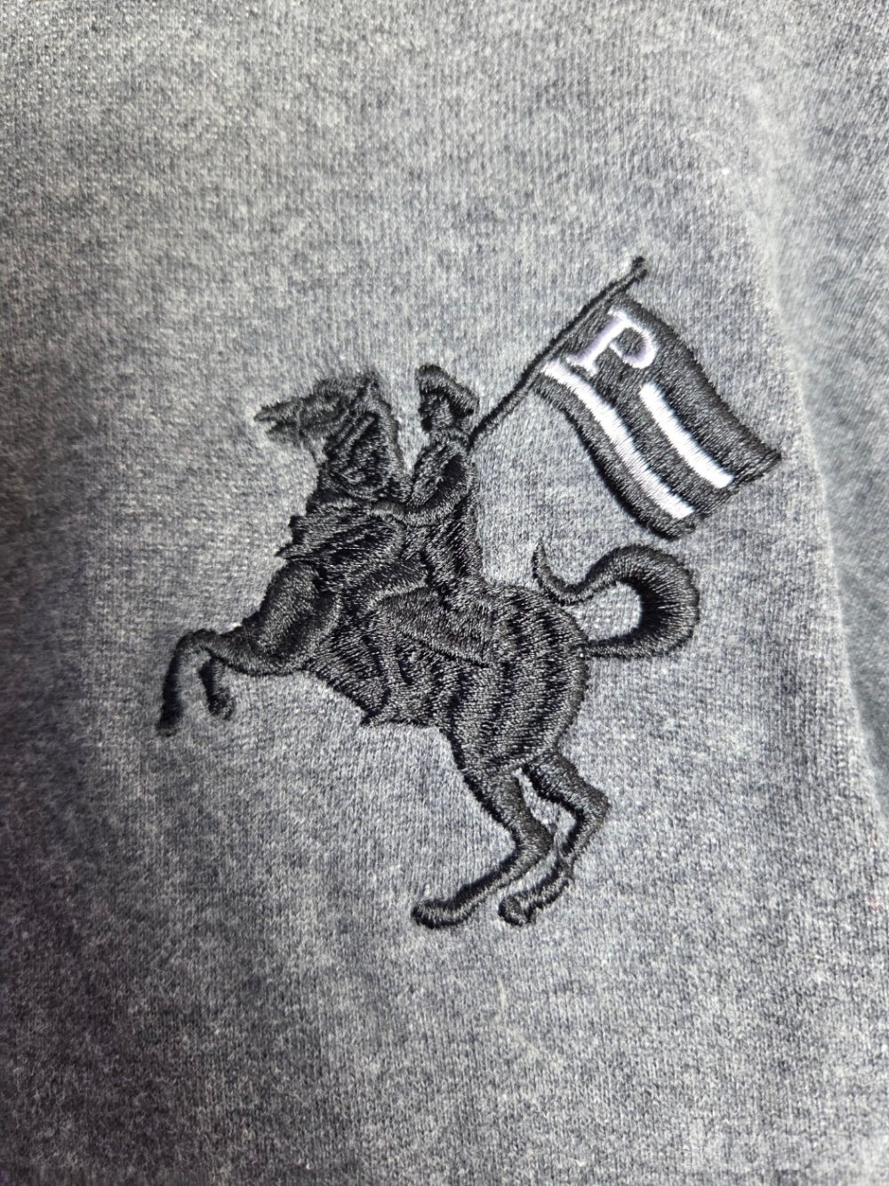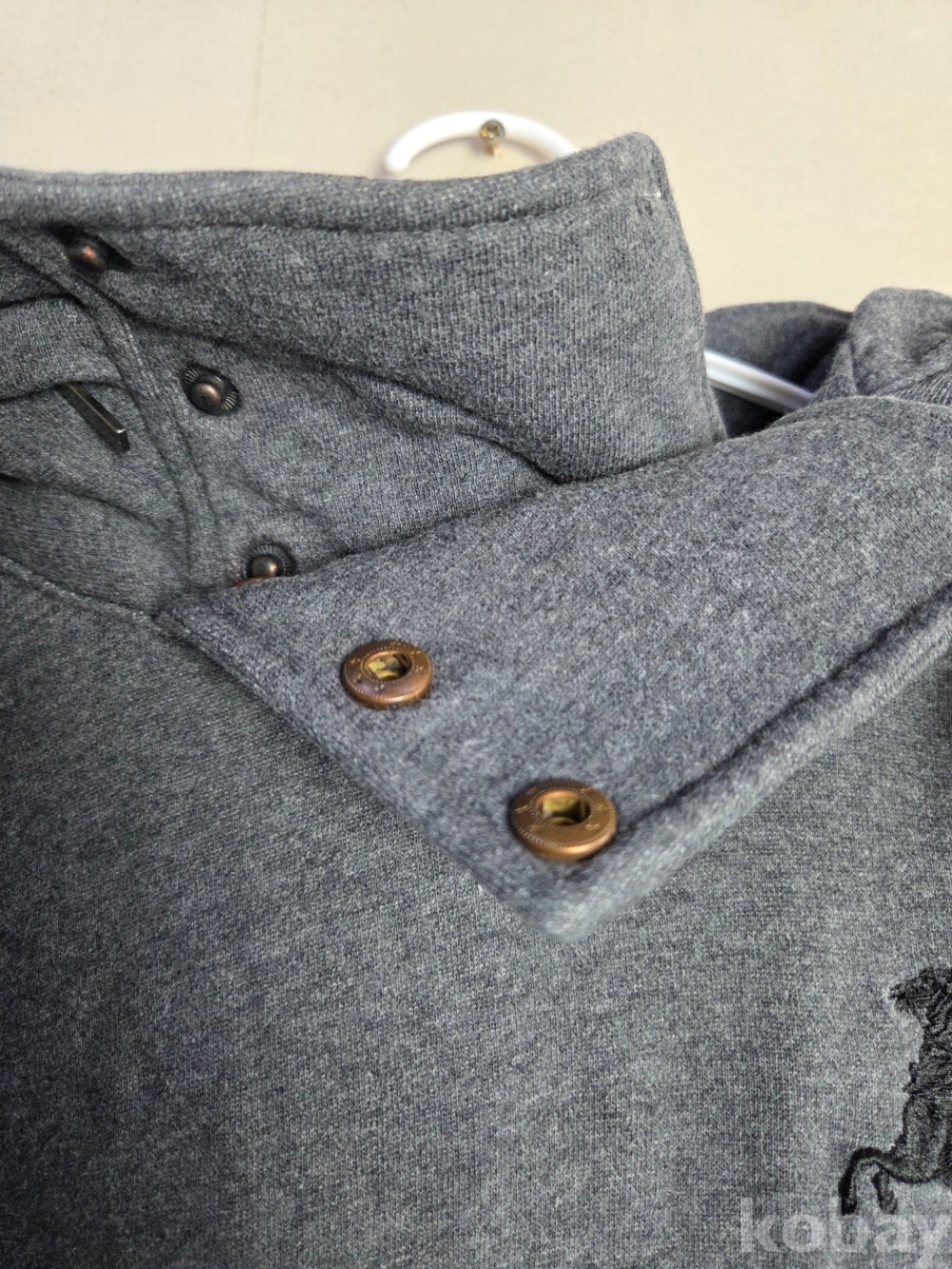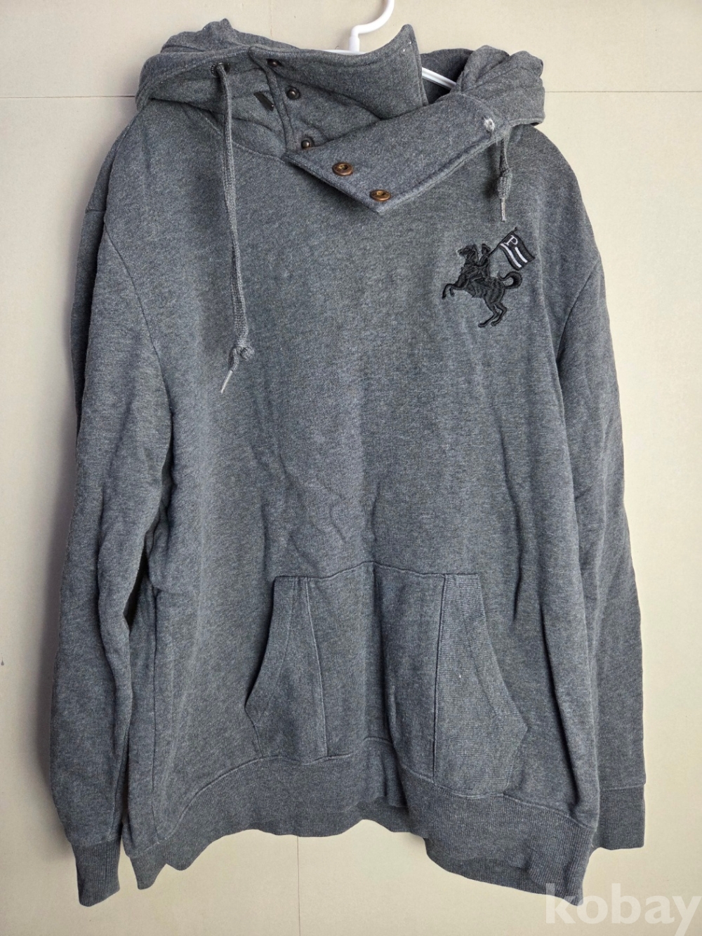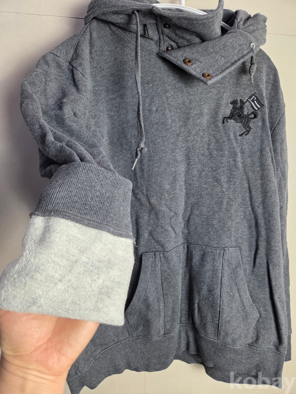 [천원옷장] A-0287 폴햄(POLHAM) 말 자수 넥 버튼 포인트 그레이 후드티 105