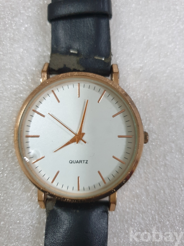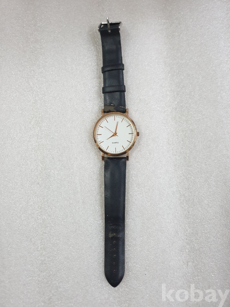 {천원경매} 1-1827 원형 검정줄 손목시계 (줄 끊어짐, 작동확인안됨)