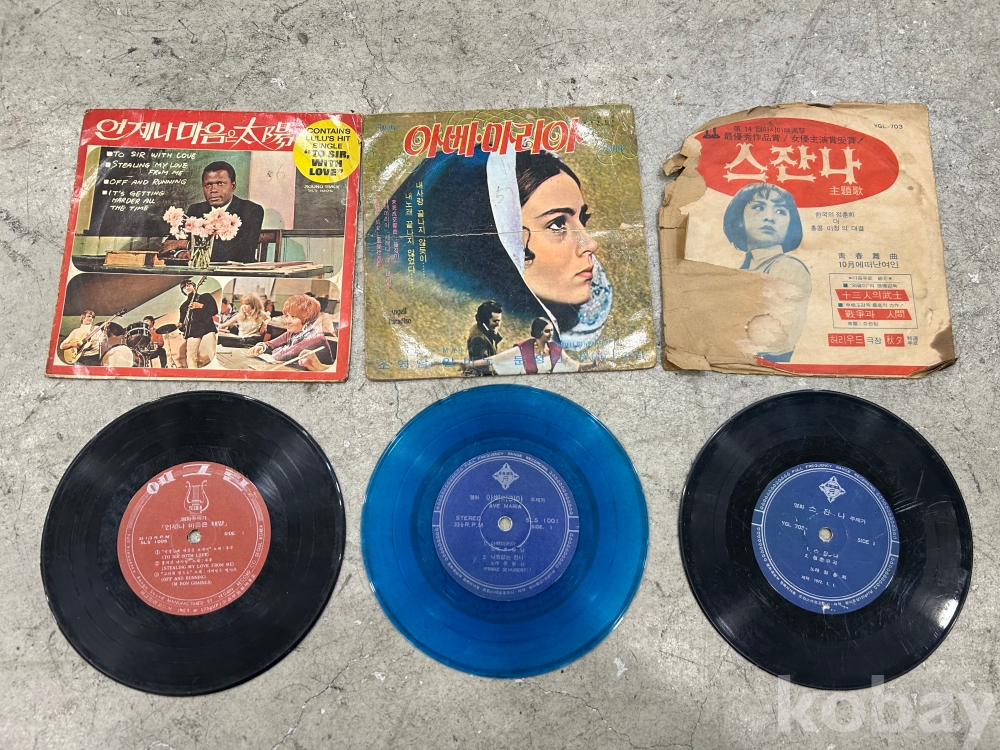 보기드문 국산 7인치 영화주제가 lp 3장입니다다언제나 마음은 태양과 아베 마리아 두장은 알판 vg+ 정도이며