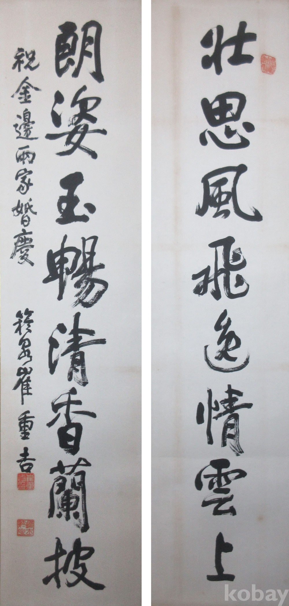국전 초대작가 심사위원을 역임하신 유명 서예가 어천 최중길 선생님의 명필 대련서예 작품입니다.