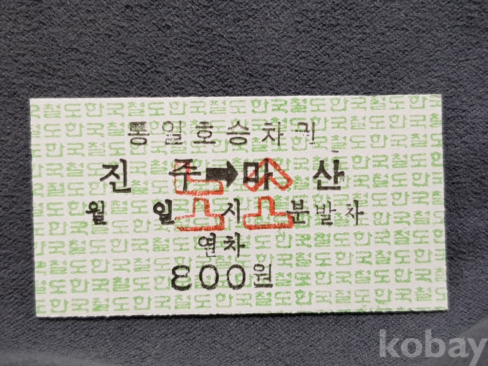 - 미사용 통일호 승차권 노소 " 진주 ▶ 마산 " 800원