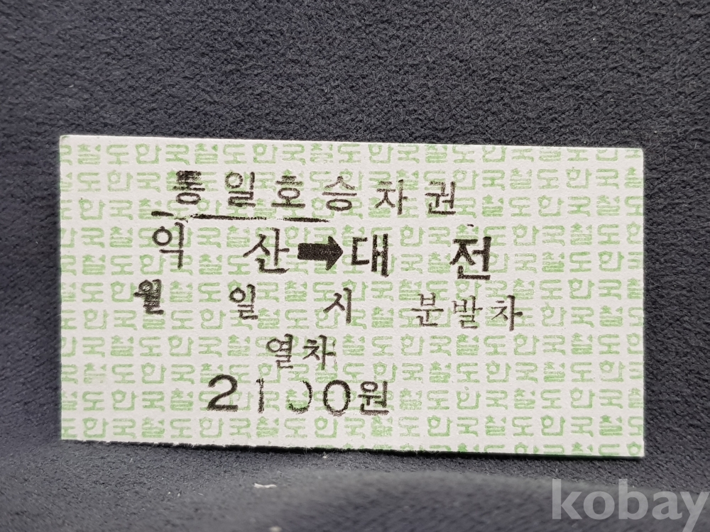 - 미사용 통일호 승차권 " 익산 ▶ 대전 " 2100원