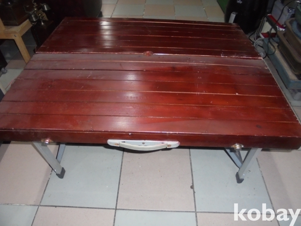 나무판에 다리는 합금으로 잘만든 싣고다니다 사용하는 접고 펴는상태 세로 74센치가되는 보관휴대에 편한 큰상