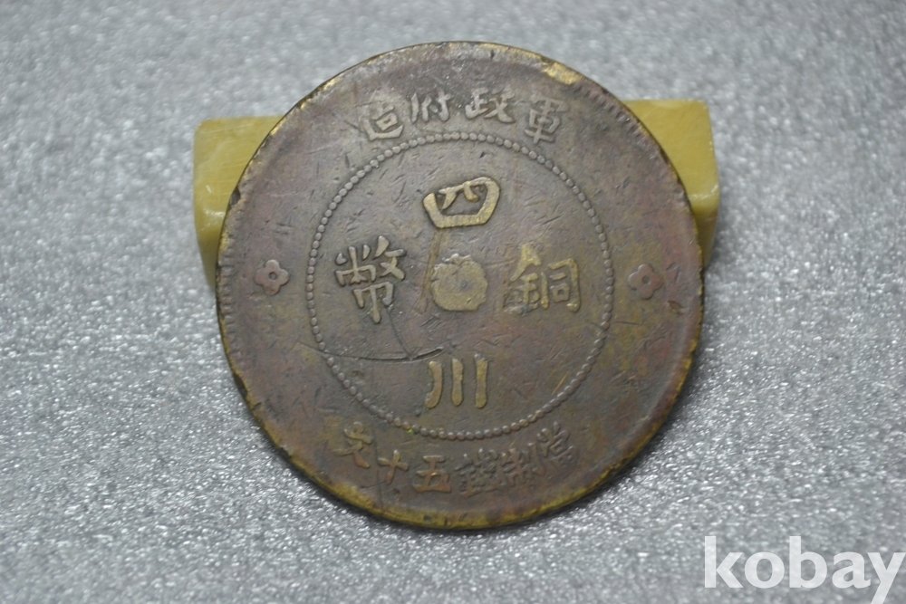 세월의 낡음상태이지만, 중국 동폐종류 가운데서도 자주 안보이는 특히 귀중한 종류의 진품 중국 사천동폐(四川銅幣) 당제전오십문(當製錢五十文) 작품 입니다.