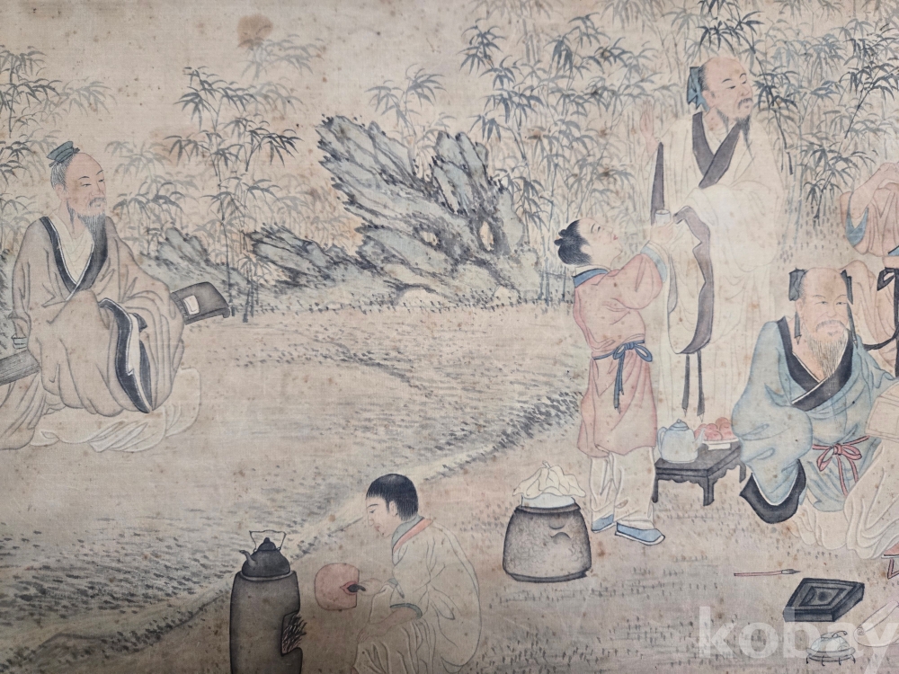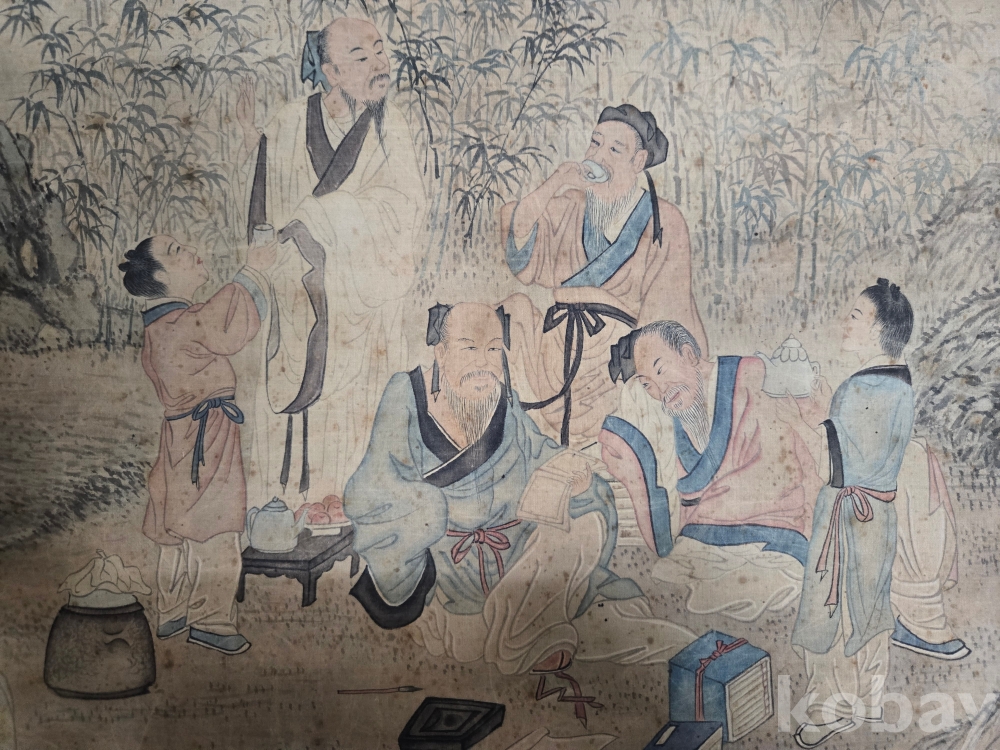 청전화숙출신으로 선전특선 및 입선 다수, 제당 배렴의 견본바닥에 그려진 신선도작품입니다.
