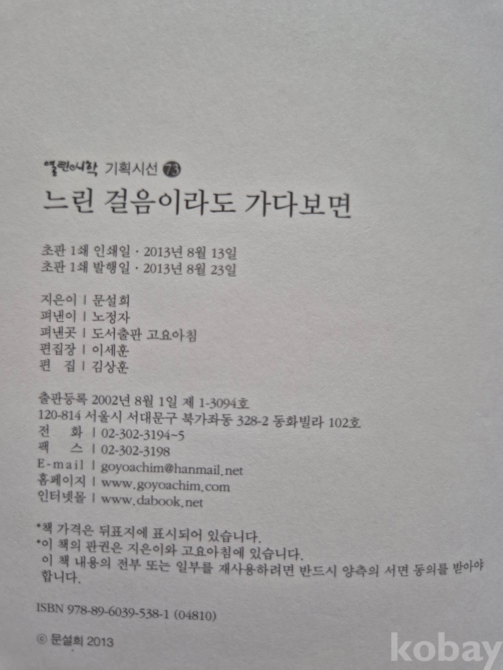 2013년 발간한 제2시집 『느린 걸음이라도 가다보면』