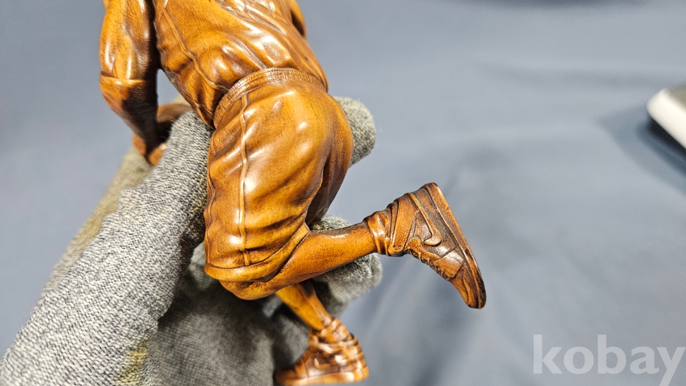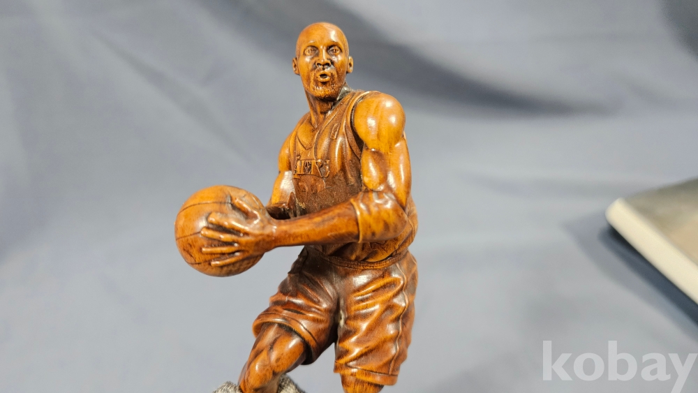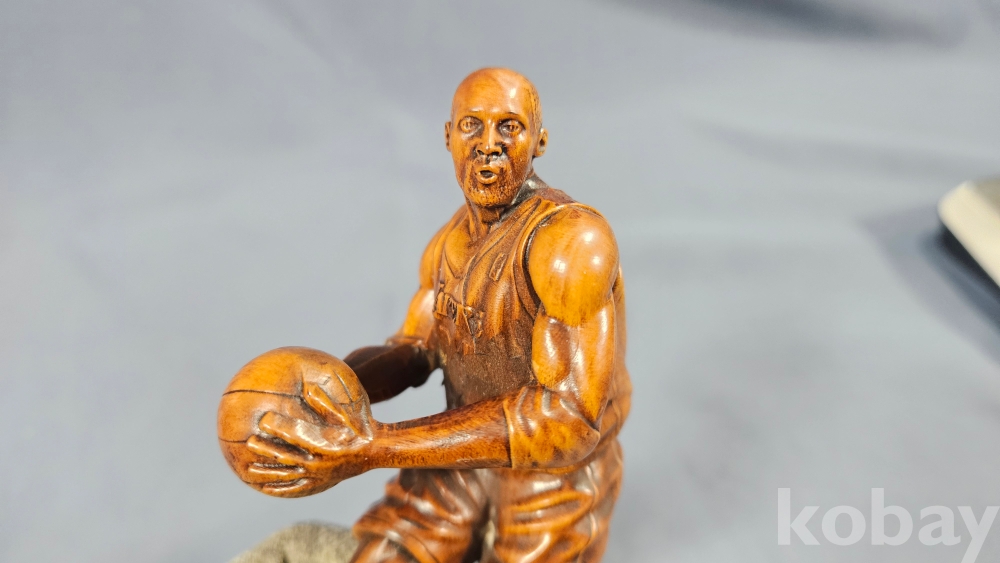 어느 유명한 농구선수의 나무조각품으로 보여집니다.