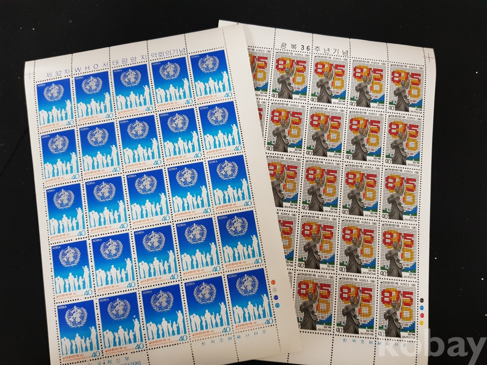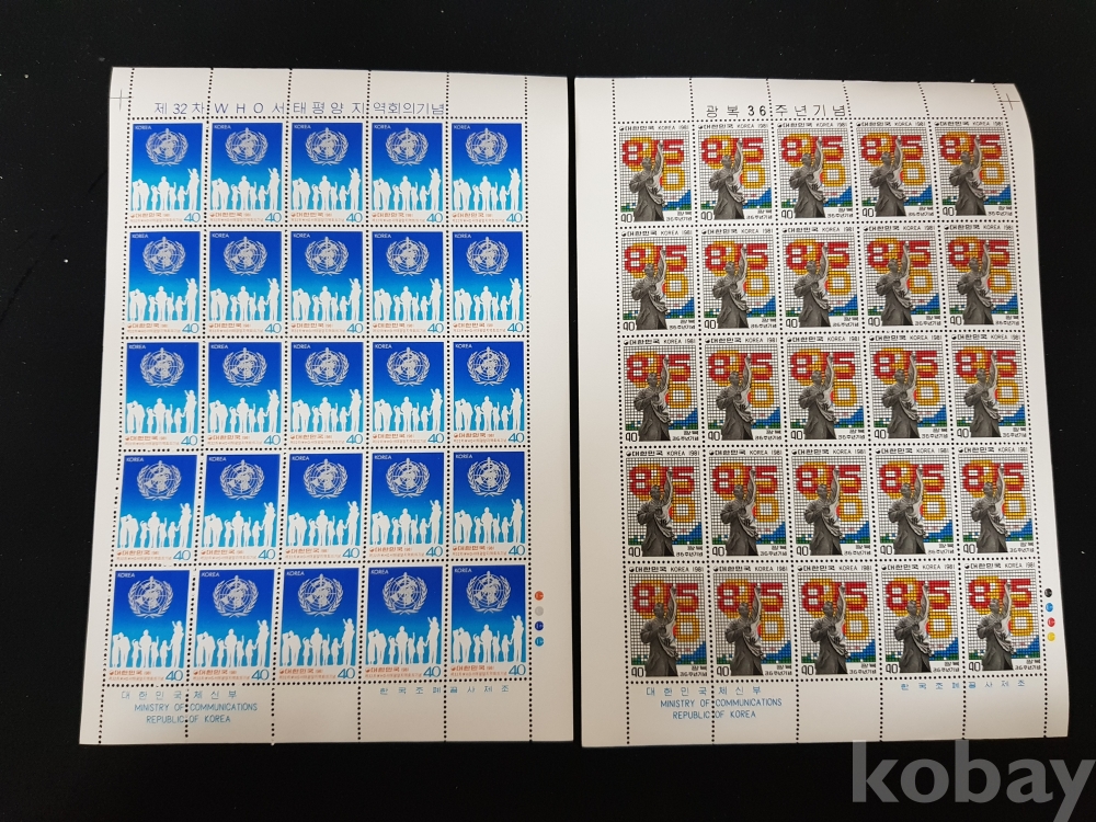 - 미사용 1981년 광복 36주년, 제 32차 WHO서태평양지역회의 기념 전지 2종 모음
