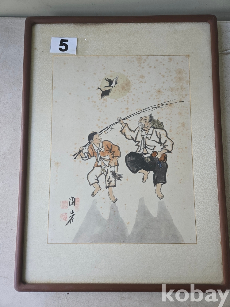 낚시 후 즐거운 모습으로 돌아오는 모습을 재밌게 표현한 그림 액자 입니다.