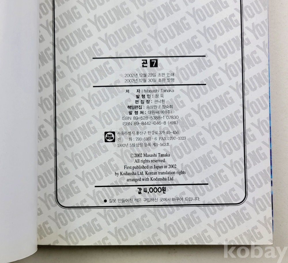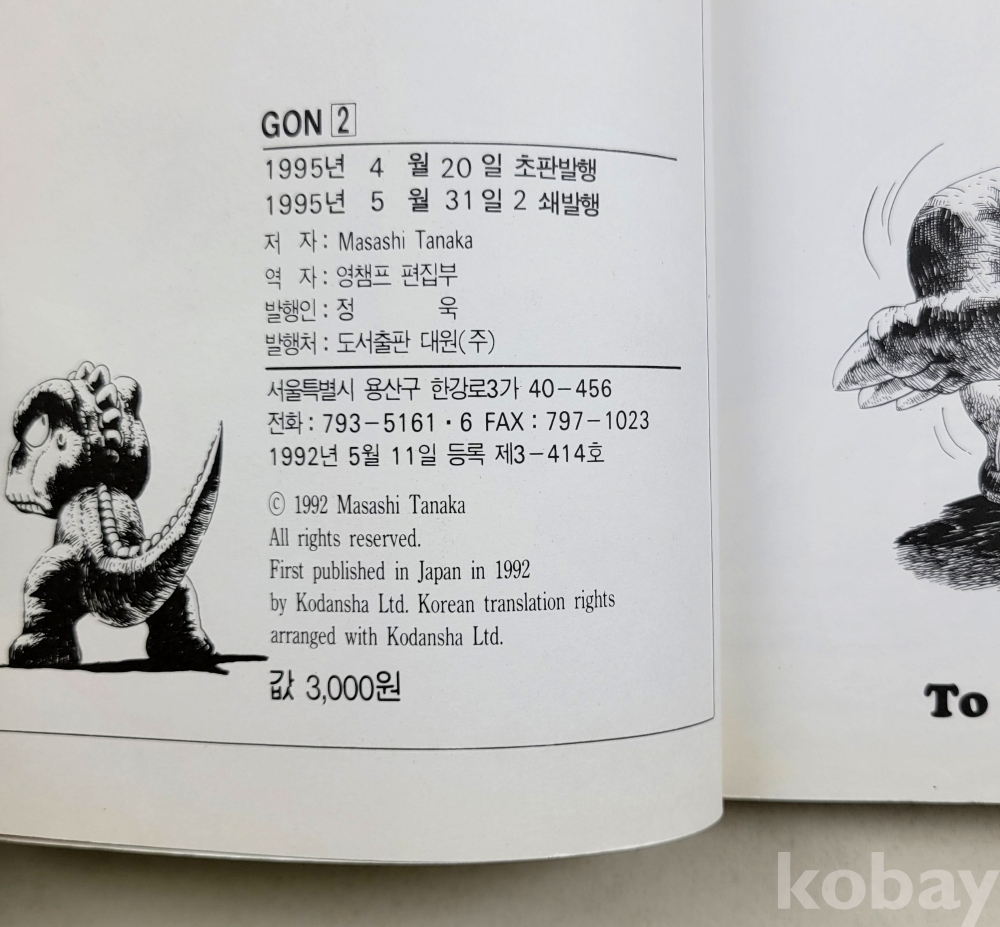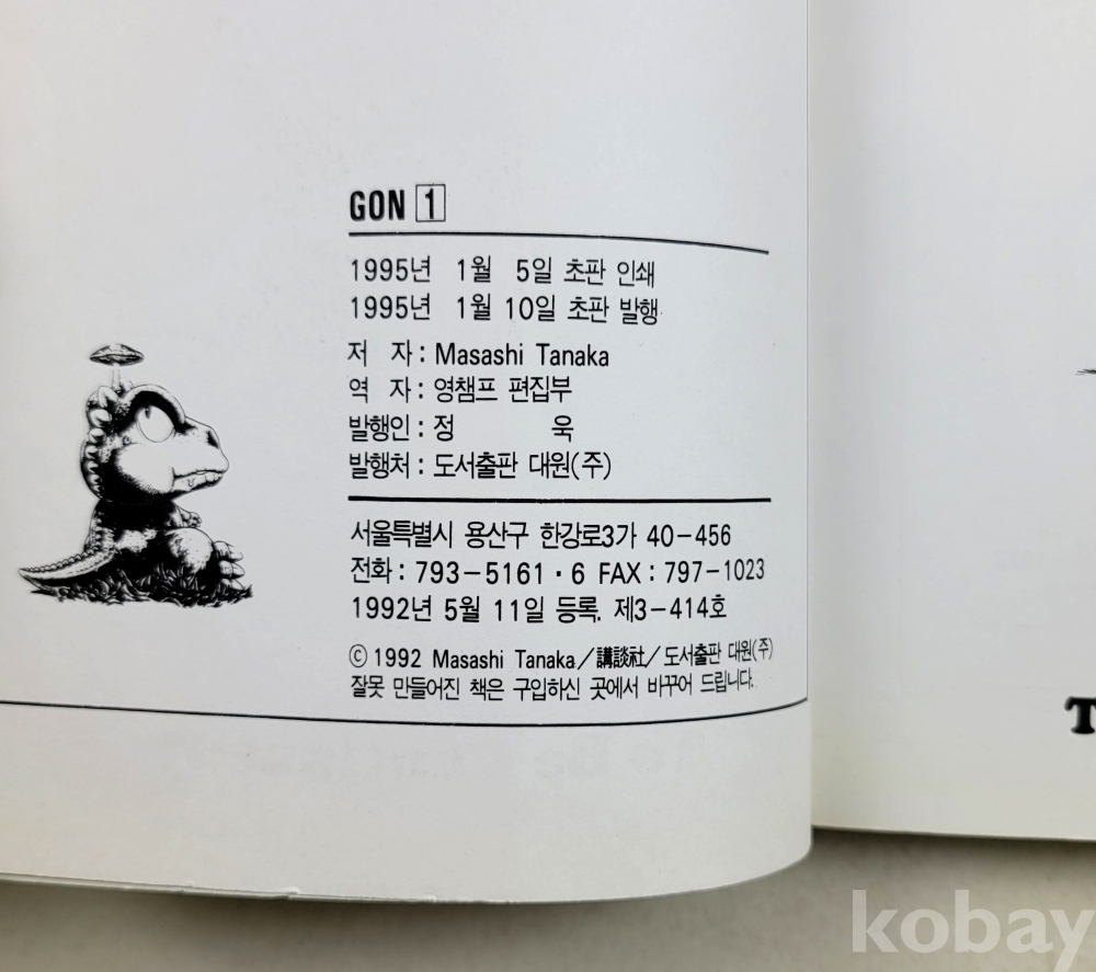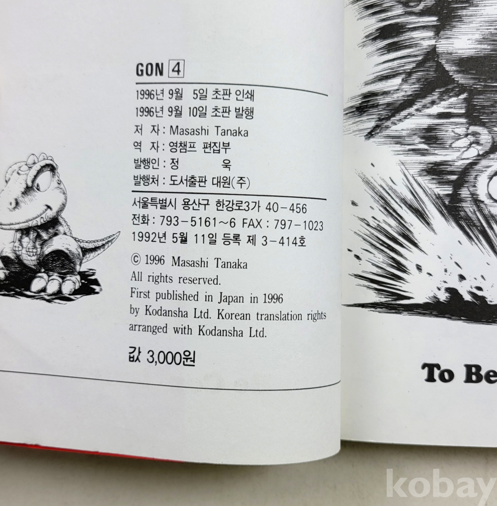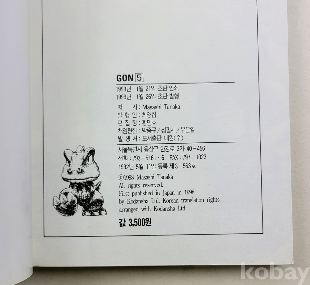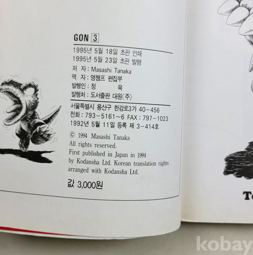 물 품 명 | GON(1~7) 총7권 / MASASHI TANAKA / 영스페셜 / 한국어판 / 연대 본문표기 / 대원 |