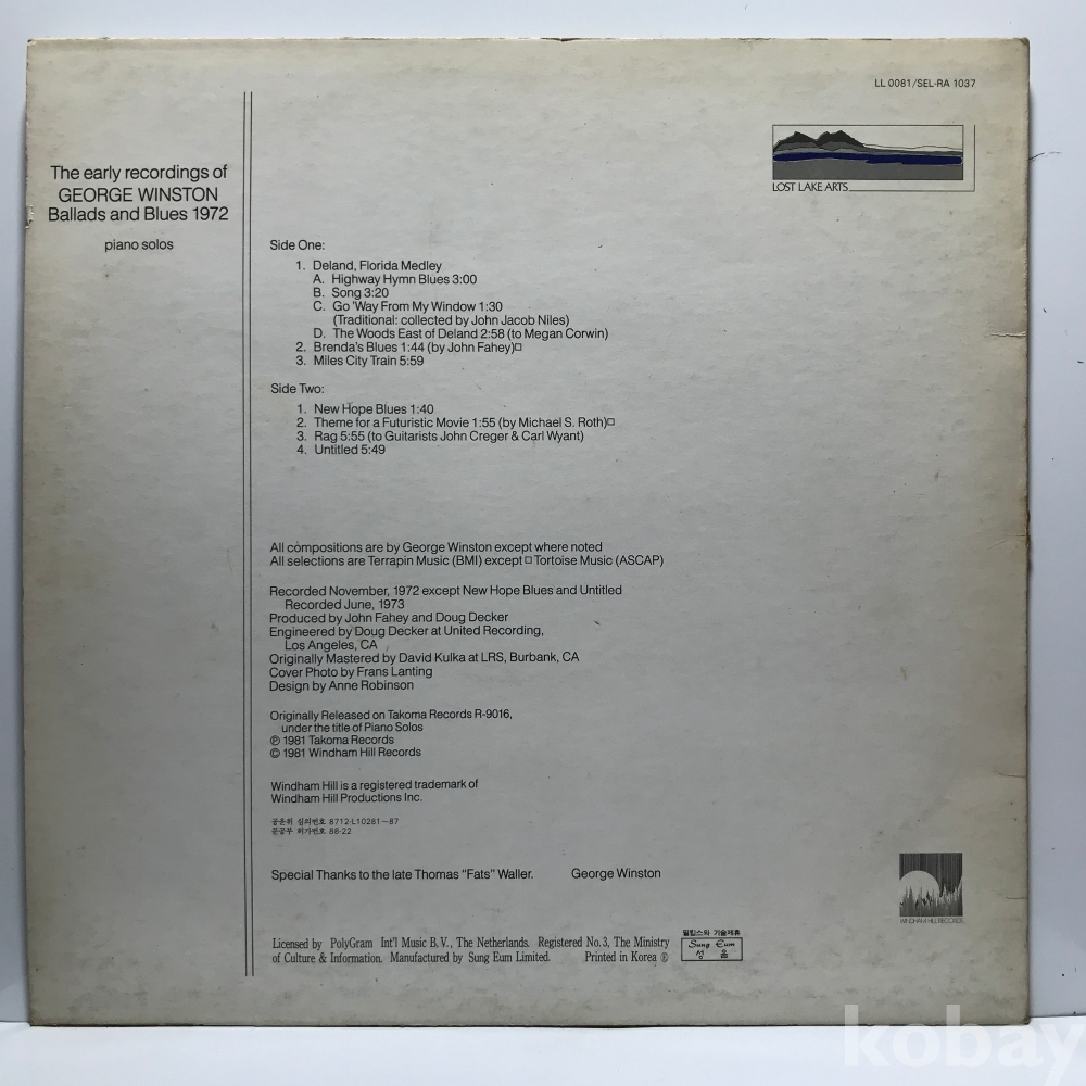 LP 83,740-75 George Winston - Ballads and Blues 1972 . 자켓 EX- 알판 VG+ 88 년 국내반