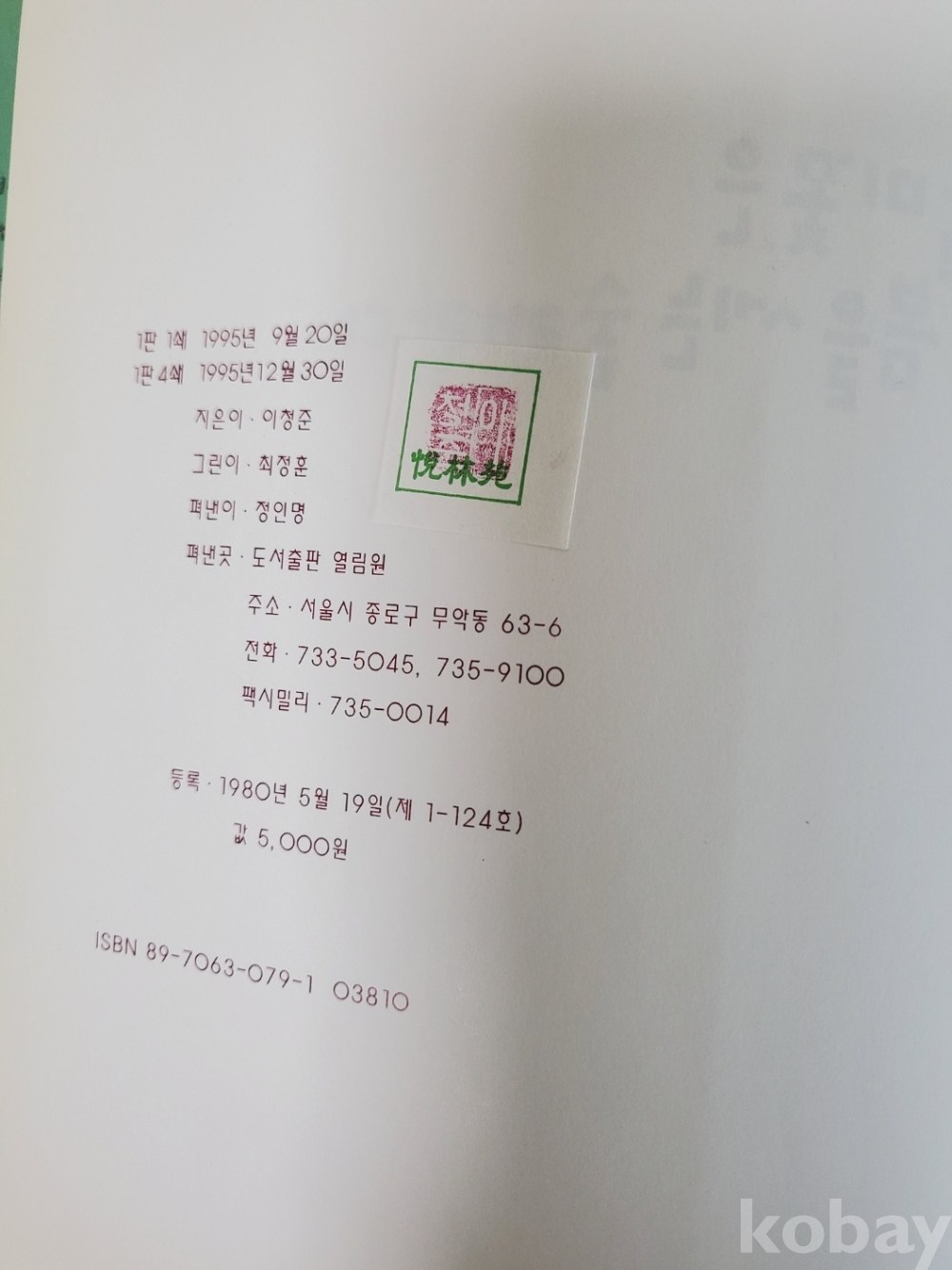 1. 할미꽃은 봄을 세는 술래란다, 이청준, 열림원, 1995년, 79쪽, 상태 상, 사진 참조