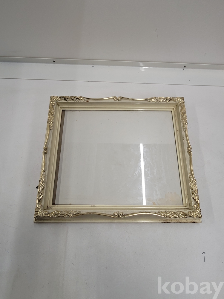 [*천원행복*] L - 1-0499 골드&화이트 프레임 액자 (29*33, 약간 벗겨짐 있음)
