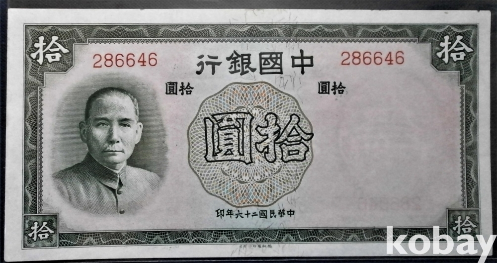 중국 중국은행 10원 민국26년