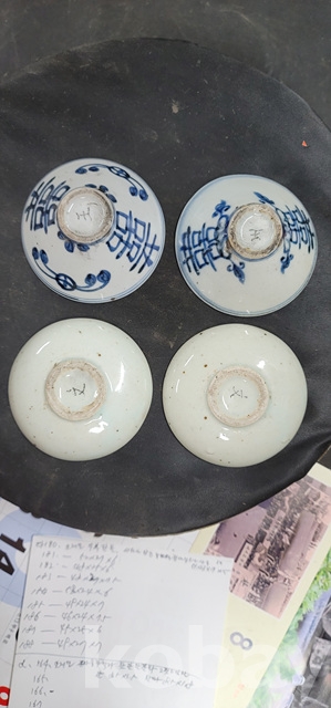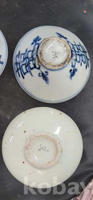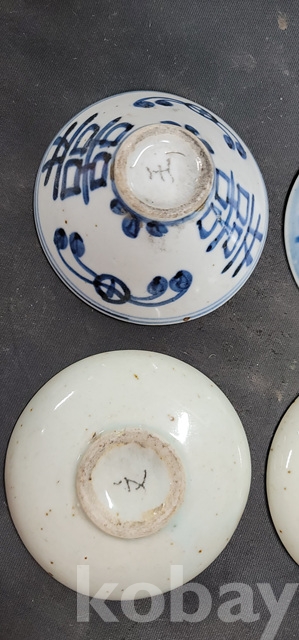 d-171.오래된 청화백자찻잔과 잔타2셌트일괄