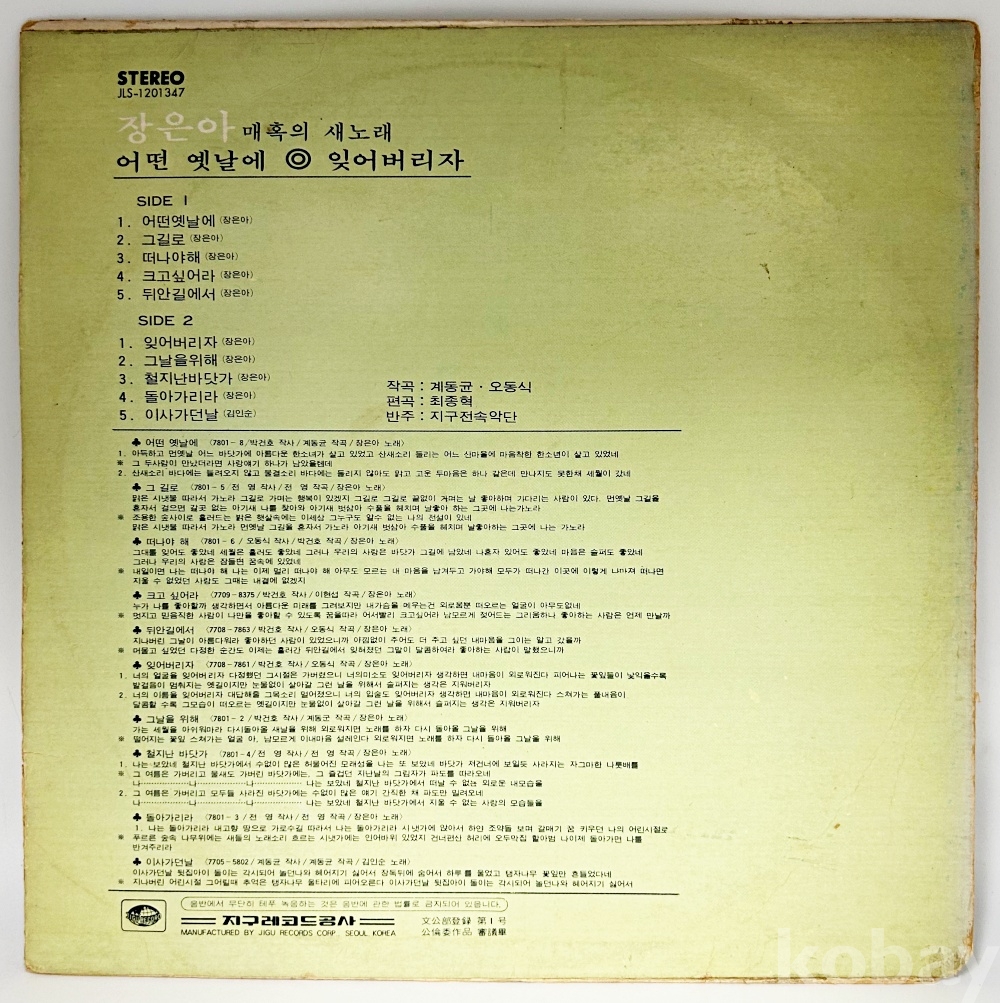상품 설명 | Side A 1. 어떤 옛날에 2. 그길로 3. 떠나야해 4. 크고 싶어라 5. 뒤안길에서 Side B 1. 잊어버리자 2. 그날을 위해 3. 철지난 바닷가 4. 돌아가리라 5. 이사 가던 날 | ||