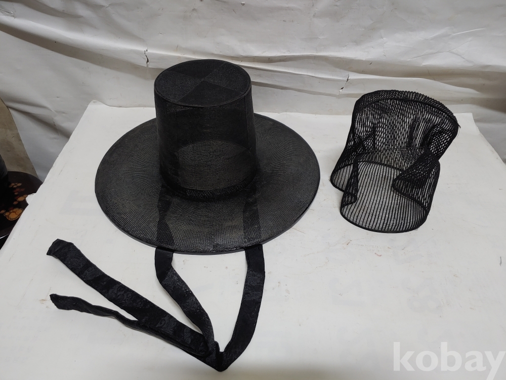 말총 갓의 테두리의 한곳에 길게 (23cm)수리가 된 부분이 있으며 수리가 된부분에 안쪽으로 조금 찢어진 부분이 있으오니 참고로 하시고 신중한 입찰을 부탁 드립니다...15번 사진 참고요