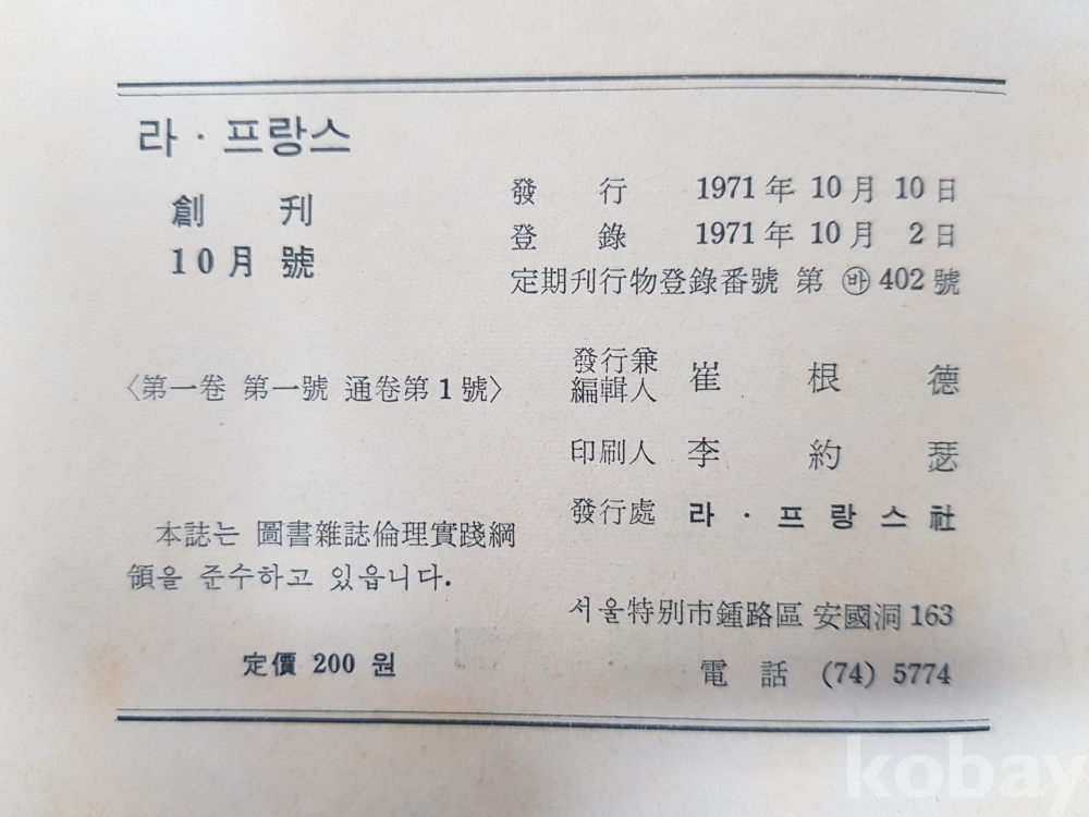 [창간호] 라·프랑스*1971년,라·프랑스社, 101p