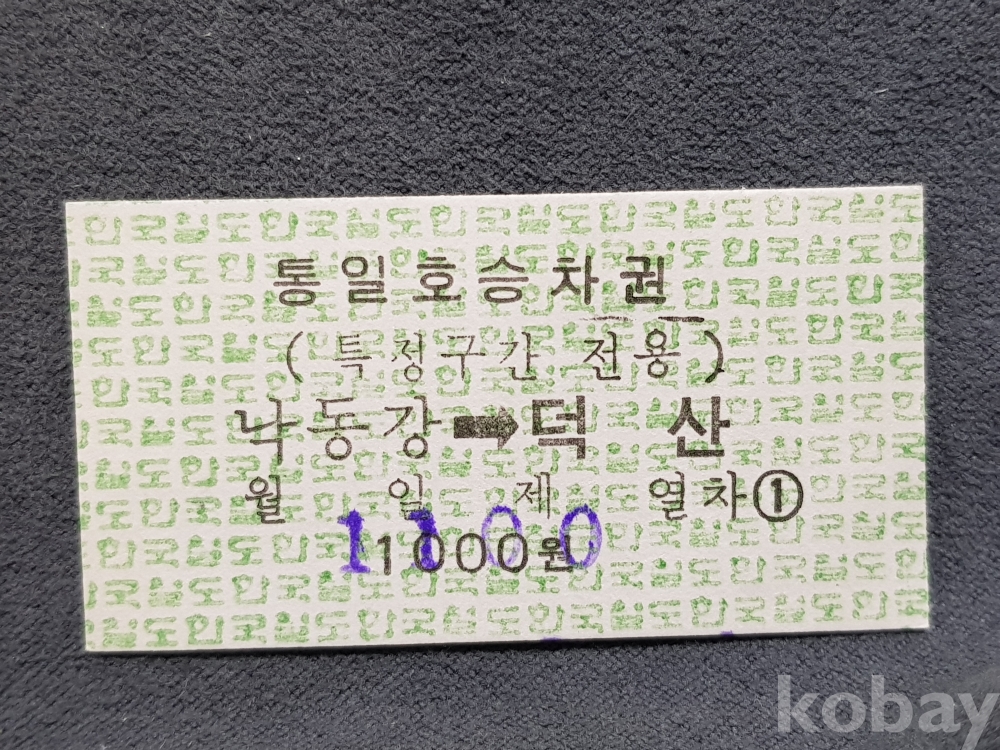- 미사용 통일호 승차권(특정구간전용) " 낙동강 ▶ 덕산 " 1100원