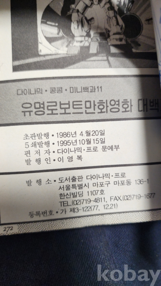 유명로보트 만화영화 대백과, 다이나믹 콩콩 미니백과(11cm x 15cm 사이즈), 1995년