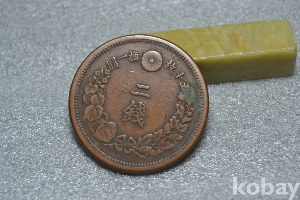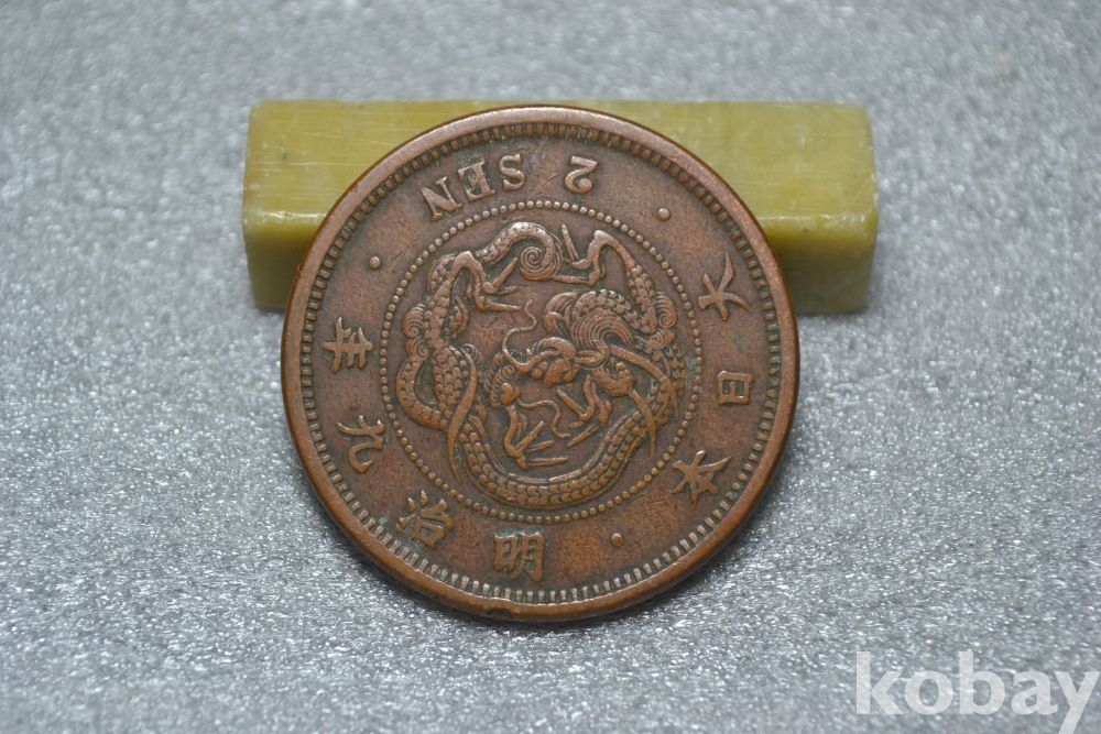 ㅡ> 100년 넘는 오래된 명치9년도(1876년도) 일본 대형 용 2전청동화 입니다.