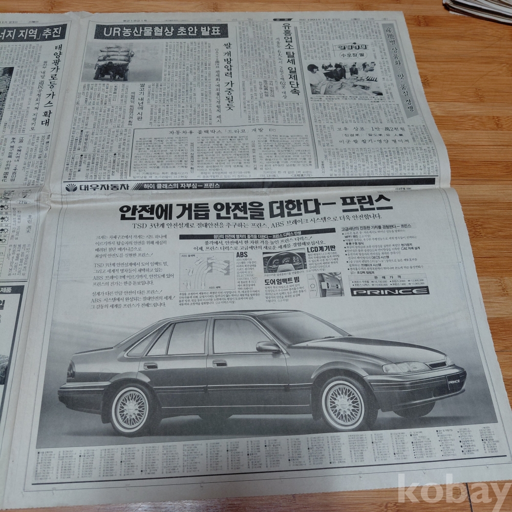 대우 프린스 승용차 광고 조선일보 91년11월23일 올려드립니다