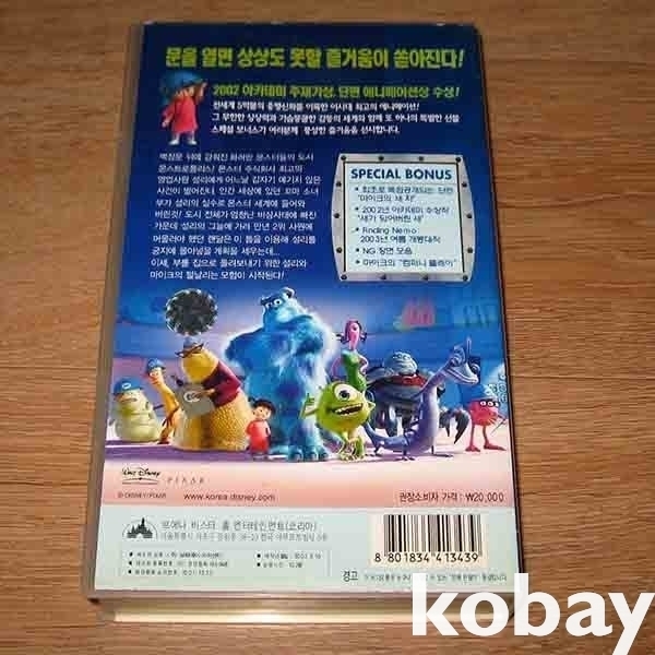 디즈니 픽사 극장판 만화영화 / 몬스터주식회사 ( 영어자막 ) VHS 비디오 테이프입니다.