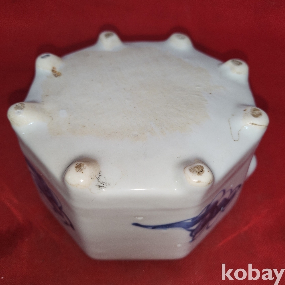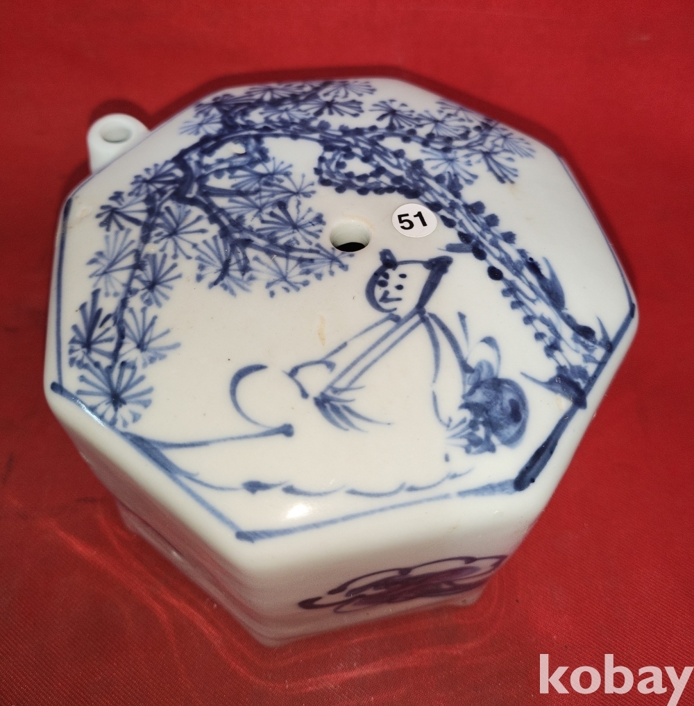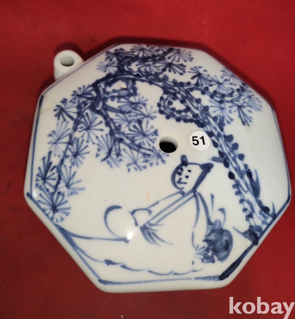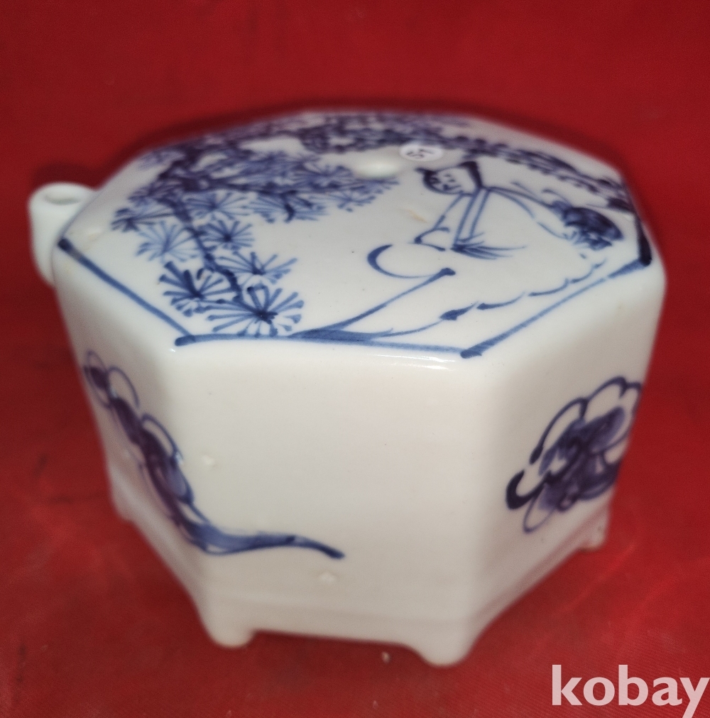 청화백자 소나무와 인물 문양 8각 연적입니다,