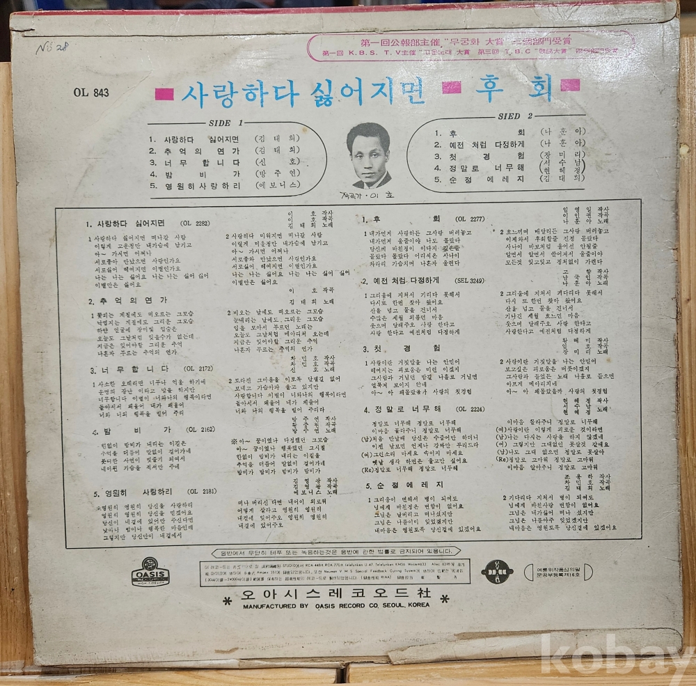 1971 년도에 발매된 [ 김태희 / 사랑하다 싫어지면 ] [ 나훈아 / 후회 ] 수록된 음반 입니다.