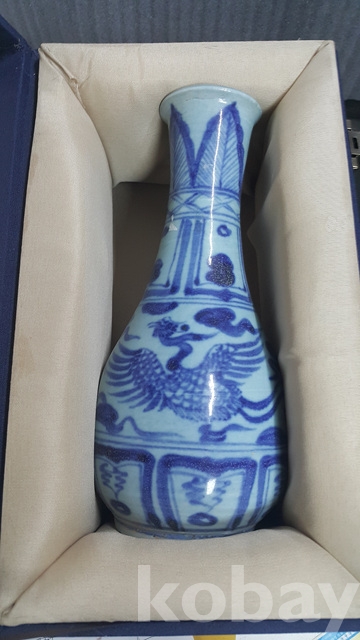 c-95.고급상자에담긴 수공으로그린 청화백자 파초봉황문