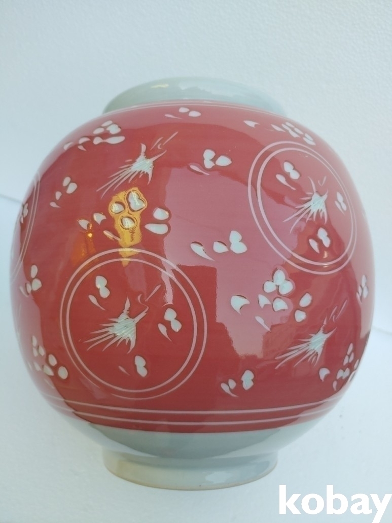 연꽃 모양이 음각으로 있는 달 도자기 입니다.