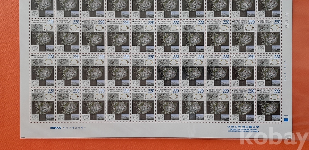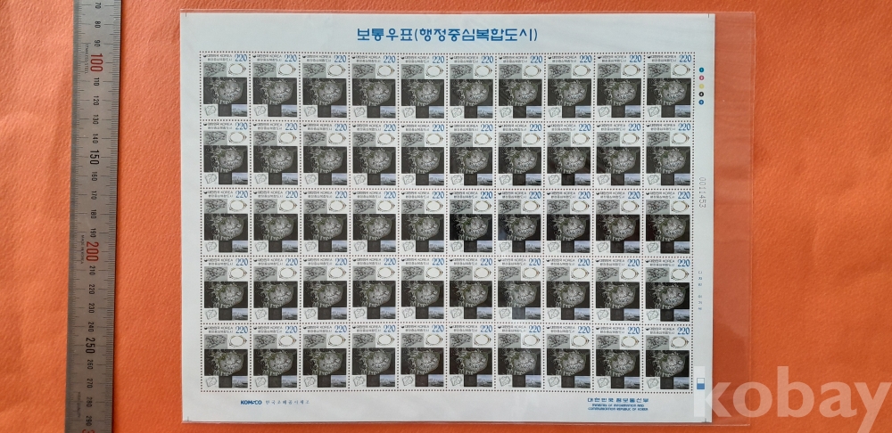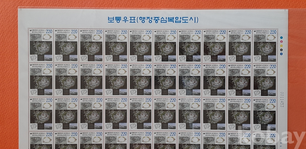 2005년 보통우표 행정중심복합도시(충청체신청 발행) 50매 전지 입니다.