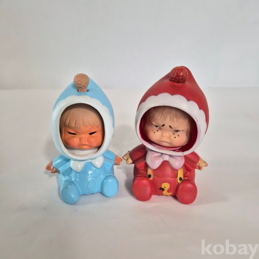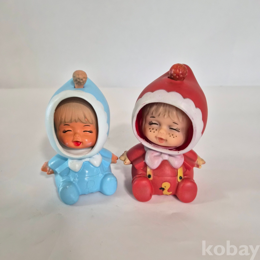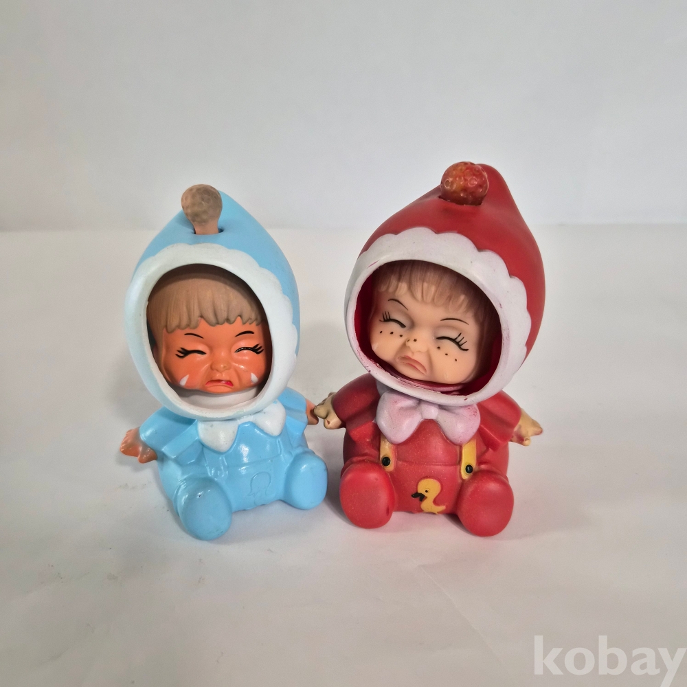 추억의 못난이 인형 목이 돌아가는 어린이 한쌍 이며