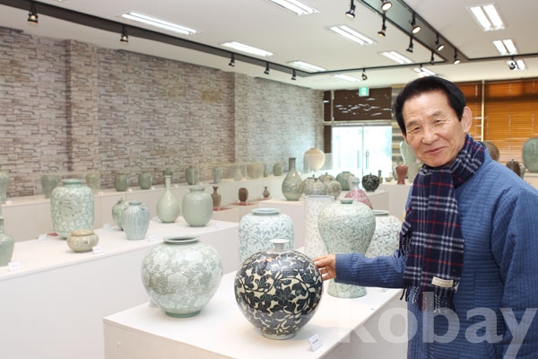 < 강진무형문화재 제 39호 청자장 > 해평 윤윤섭 作品 < 높이 34 >