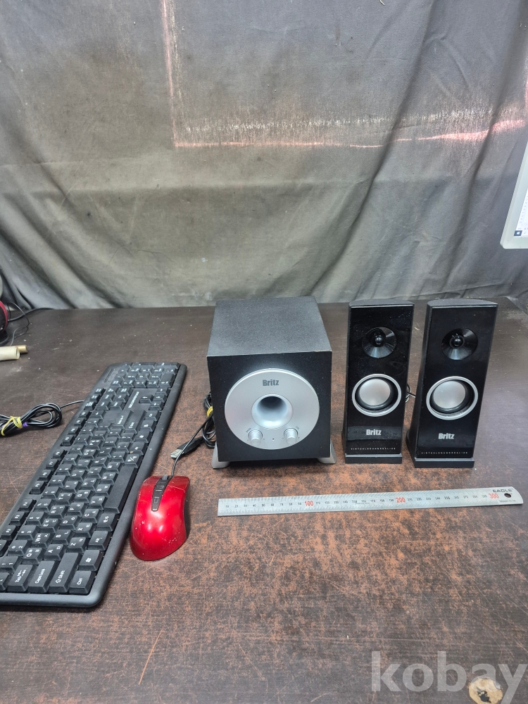 2014년식 BRITZ 앰프내장형 컴퓨터용 스피커 모델 BR-1200 본체 좌우 3점 키보드 좌판1점 마우스 1점 포함 44*14*3