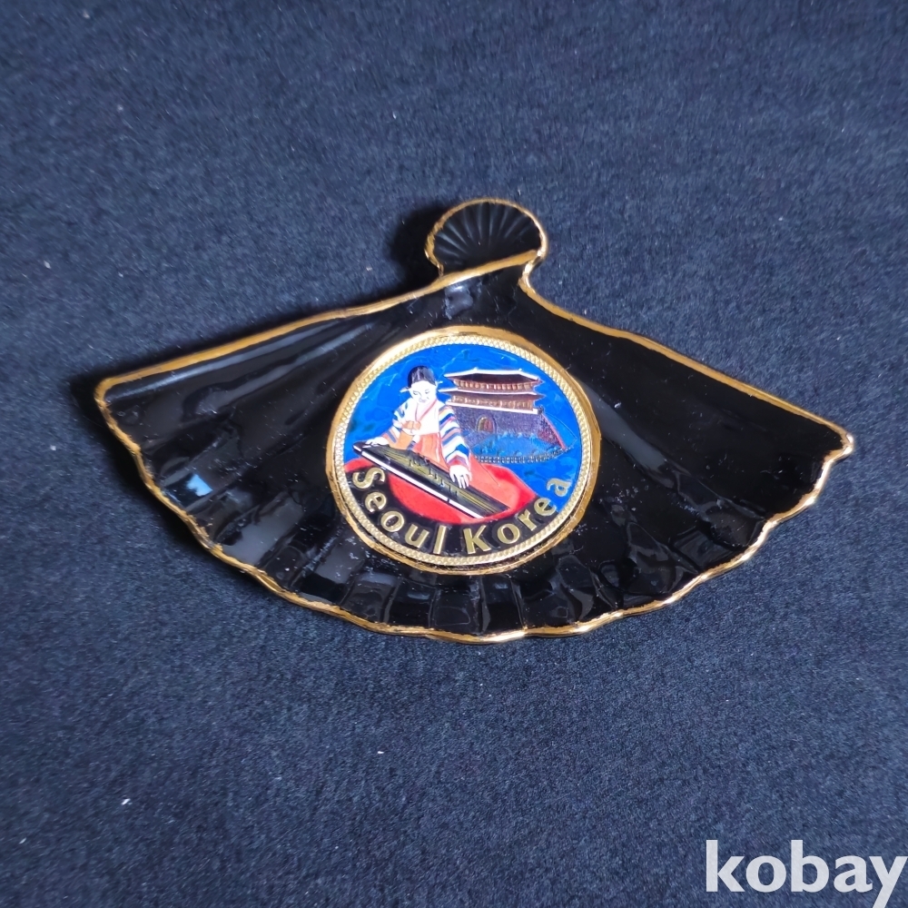 (((근현대사자료))) 오래전 가야금타는여인모습과 남대문모습담긴 부채모습 도자기 접시
