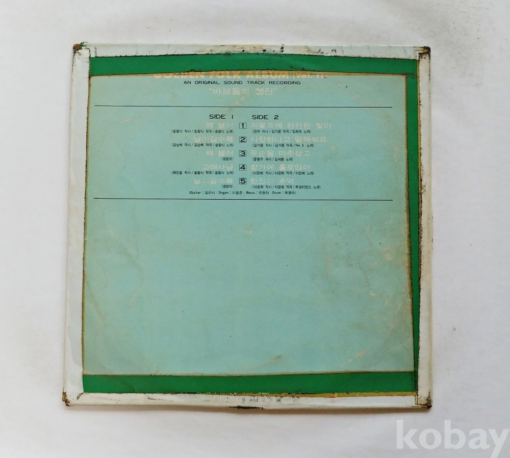 | 자켓상태 | VG : 주름, 접힘, 모서리 찢김 다수 | 음반상태 | EX : 재생에 영향 없는 가벼운 기스 존재 | 발매정보 | 알수없음 | 가사지여부 | 무 |