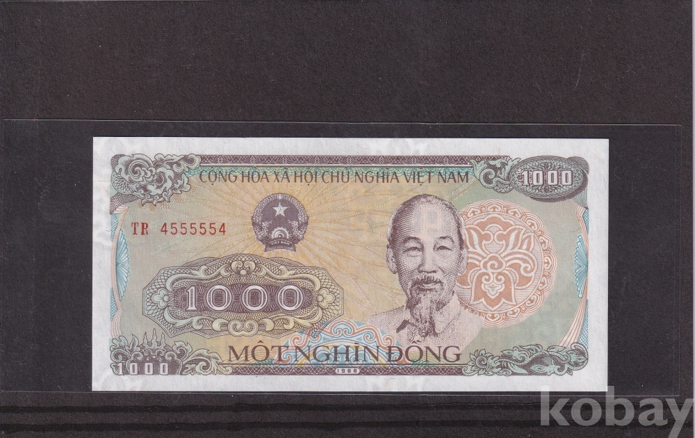*베트남 특이번호 지폐 모음展* 1988년 1000동 TR 4555554 - 5봉 레이더 미사용 지폐