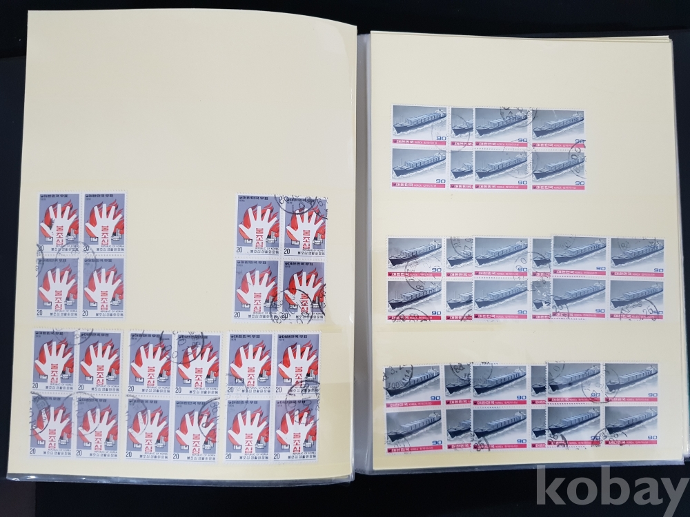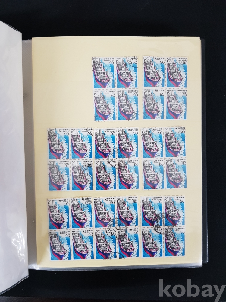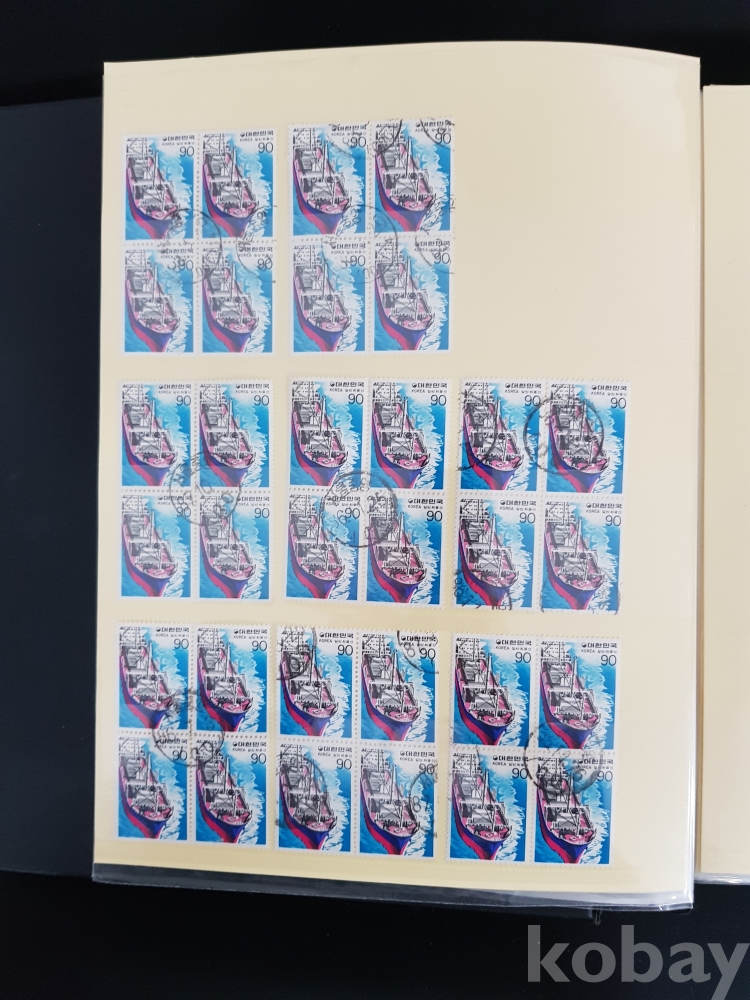 - 다양한 사용제 한국우표, 전지가 다량 첨부된 우표앨범(우표책)