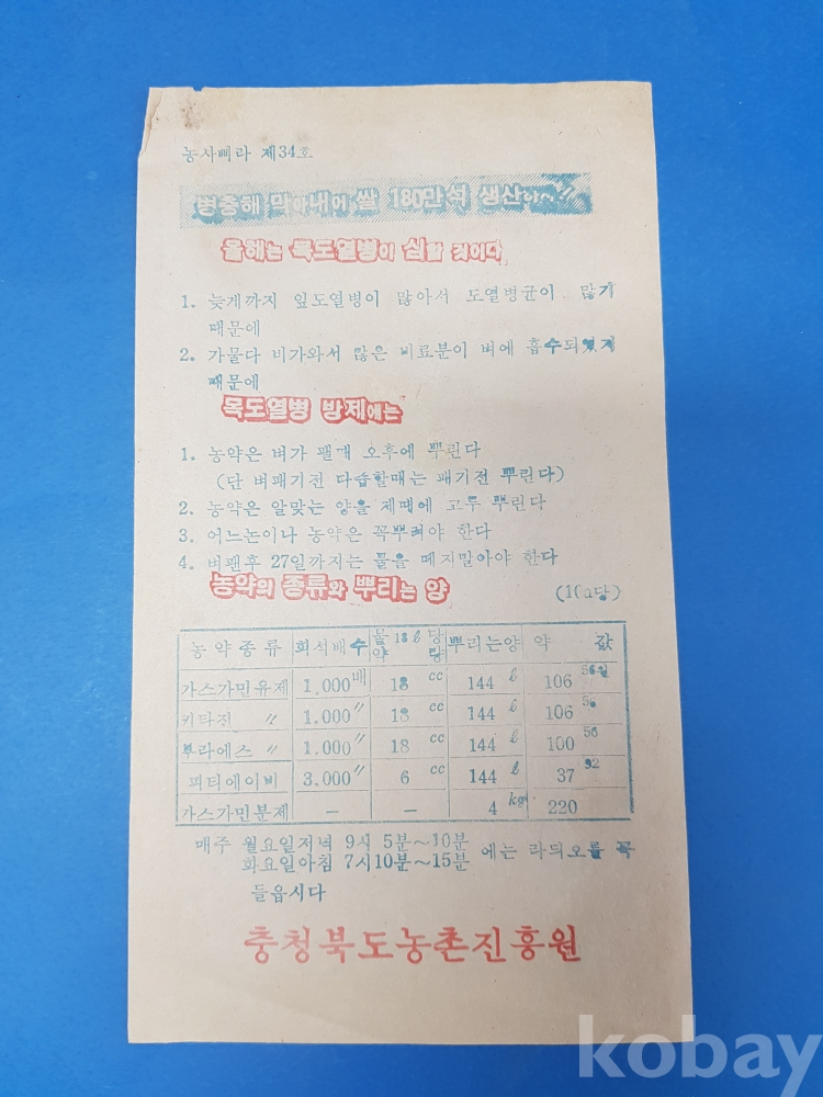 **** 농사삐라 제34호/병충해 막아내어 쌀 180만석 생산하자/충청북도농촌진흥원