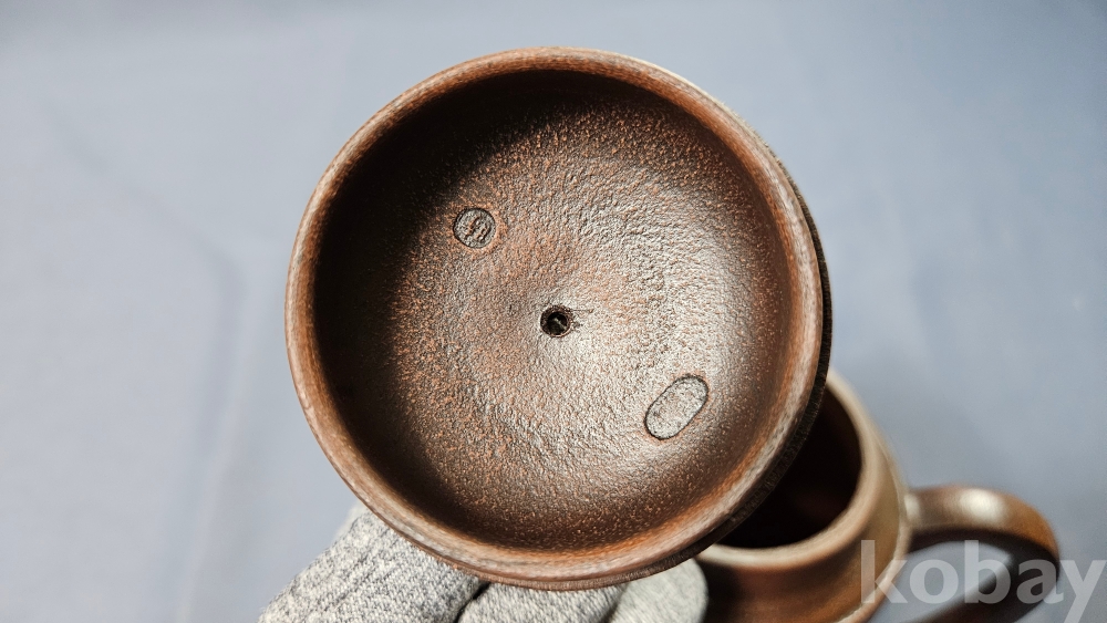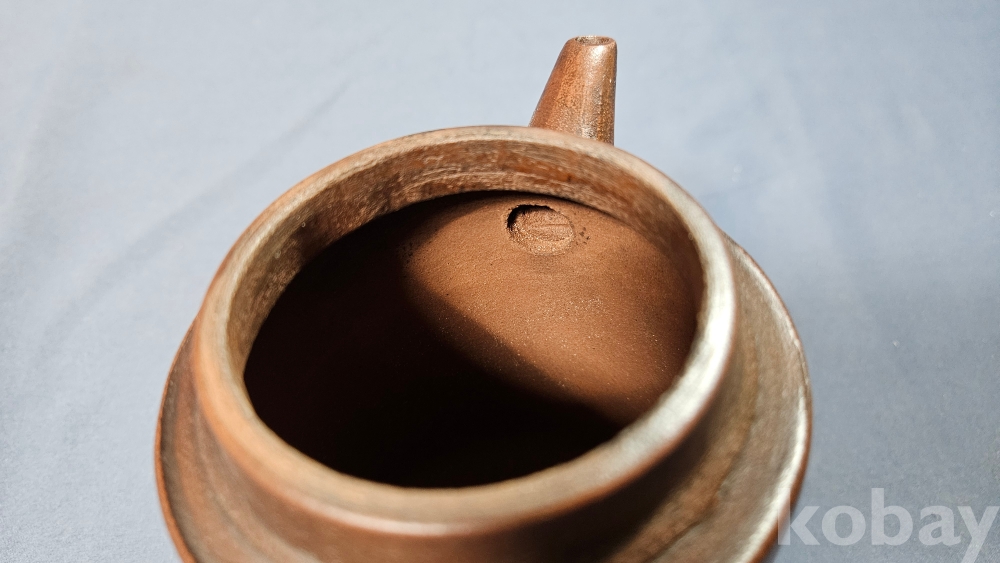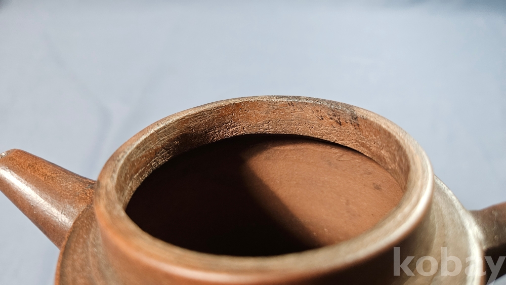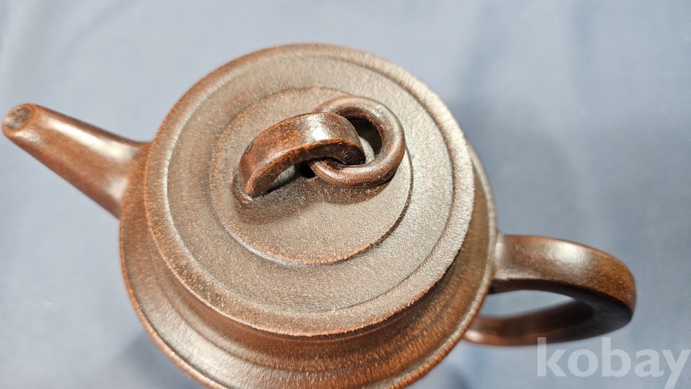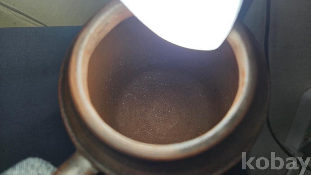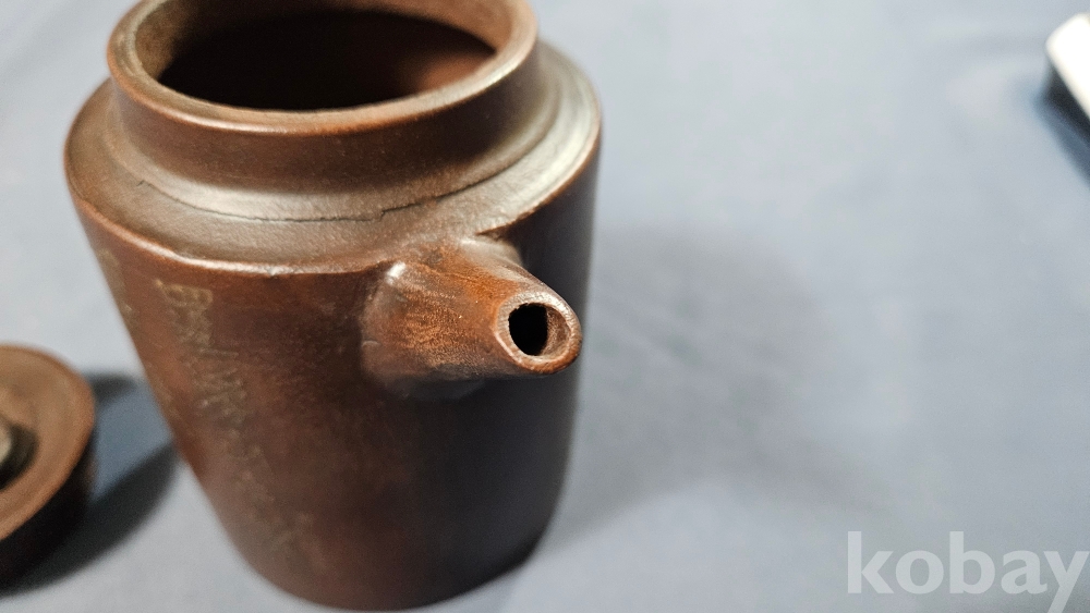 연꽃문양과 글귀가 들어있는 고태미가 넘치는 자사주전자 입니다.