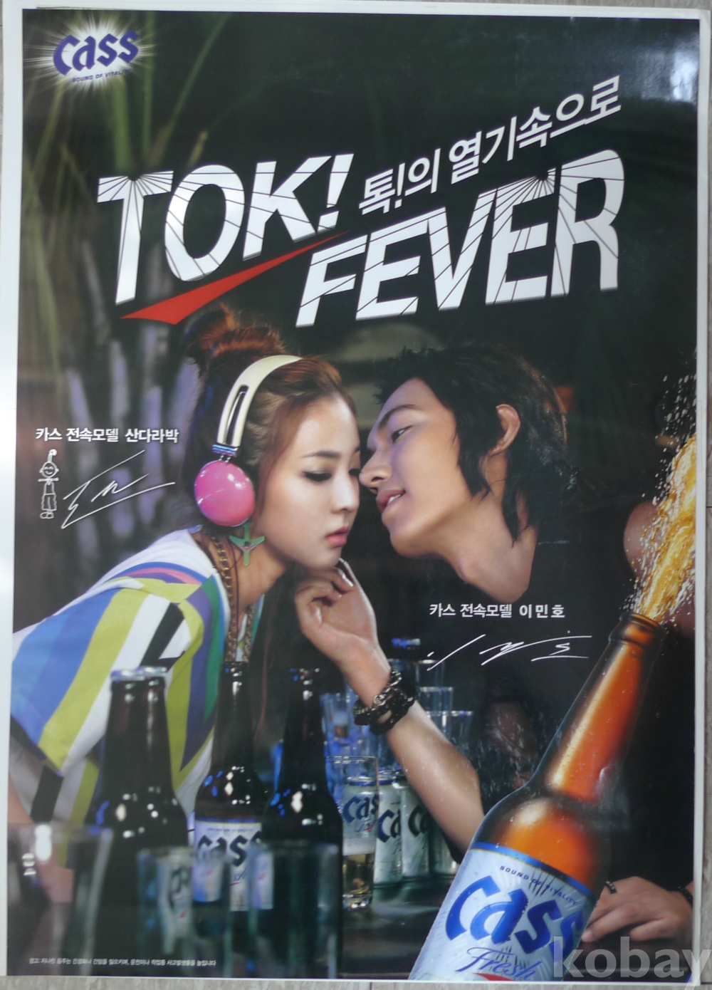 가수 산다라박, 탤랜트 이민호 모델 카스 맥스 광고 포스터
