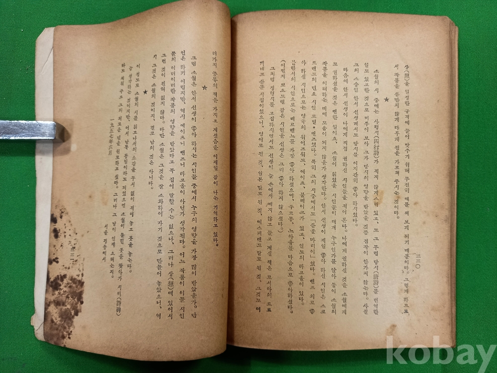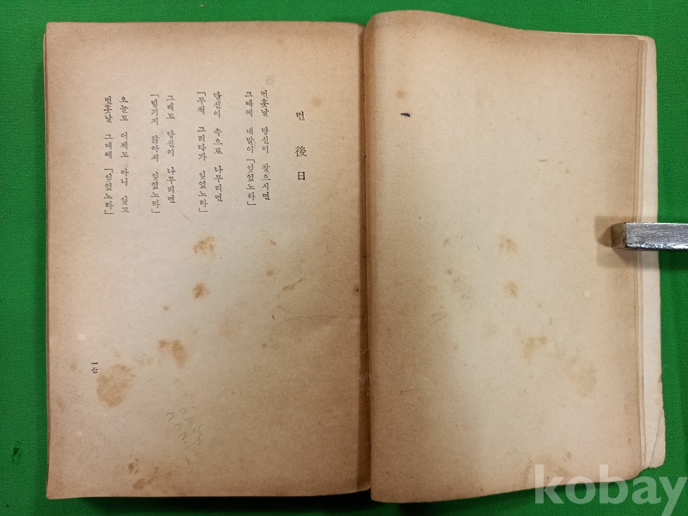책 등 테이프 붙어 있으며 헤짐 얼룩 등 세월의 있습니다